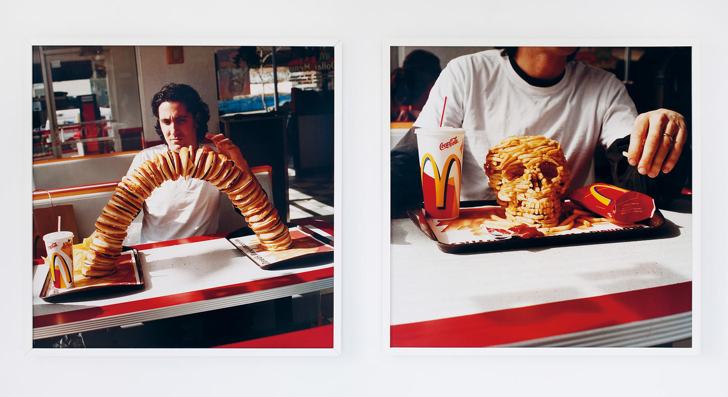 During the research for the Annual Art Edition ''Speed,'' somehow the term fast food got in the mix. Forty came up with a picture of a french fries skull which, after a while, was identified as part of ''McMiracles,'' a photographic diptych by Christopher Chiappa. A closer inspection of his output unfolded that his take on art has some sort of dark humor that is on the same wavelength as ours. Reason enough to hook with him to get further facts. Chiappa was born in 1970 in West Chester, Pennsylvania. He obtained his undergraduate degree from Middlebury College in 1993 and attended the Skowhegan School of Painting and Sculpture in 1998. He currently lives and works in Long Island City, NY.