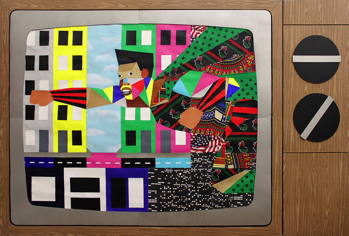 Derrick Adams: For me, my basic existence as a person is kind of spilling over into creativity. Visual art is more like a second language to me and a way to present ideas to people, to viewers in a way that they can connect to other types of visual symbolism. Thar they can also understand the structure of images in the way things are put out to us and how we embrace them or reject them through art or sound or so many different formats.