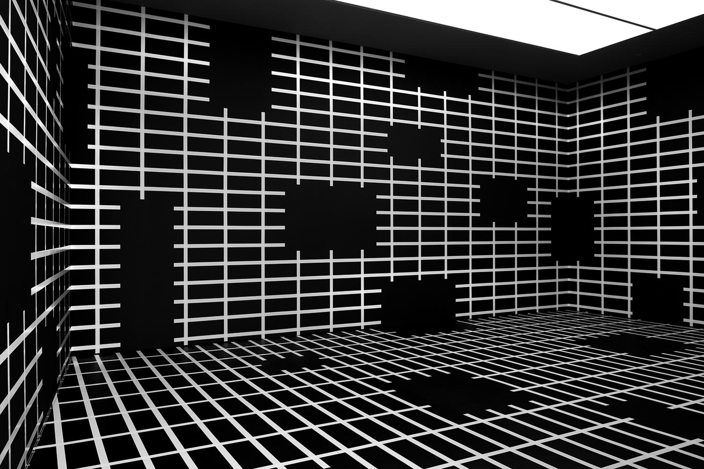 ░▊▊ ░ ▊ ░ At first glance, Esther Stocker’s elaborate paintings, murals and installations have an almost soothing quality: Always based on grid structures, always black-and-white (with additional shades of gray), they seem to portray the kind of order and coherence our everyday existence too often lacks. And yet it’s a trick to lure us in, to make us forget what we were thinking about a minute ago, to come closer and take a second look: manipulating the relationship between the painting and ourselves, the viewers, the Vienna-based artist (*1974) manages to trap us in a loop as we’re trying – in vain – to decipher whatever message or system of patterns might be underlying her work. Thus raising questions about the relationship between chaos vs. order, reality vs. fiction, foreground vs. background, precision vs. elusiveness, certainty vs. ambiguity, the various disturbances and glitches in her illusive works ultimately put all our assumptions of the world around us to a test. We reached out to Esther to learn about rhythmic patterns, rectangular friends, and the stubborn nature of artworks in general.