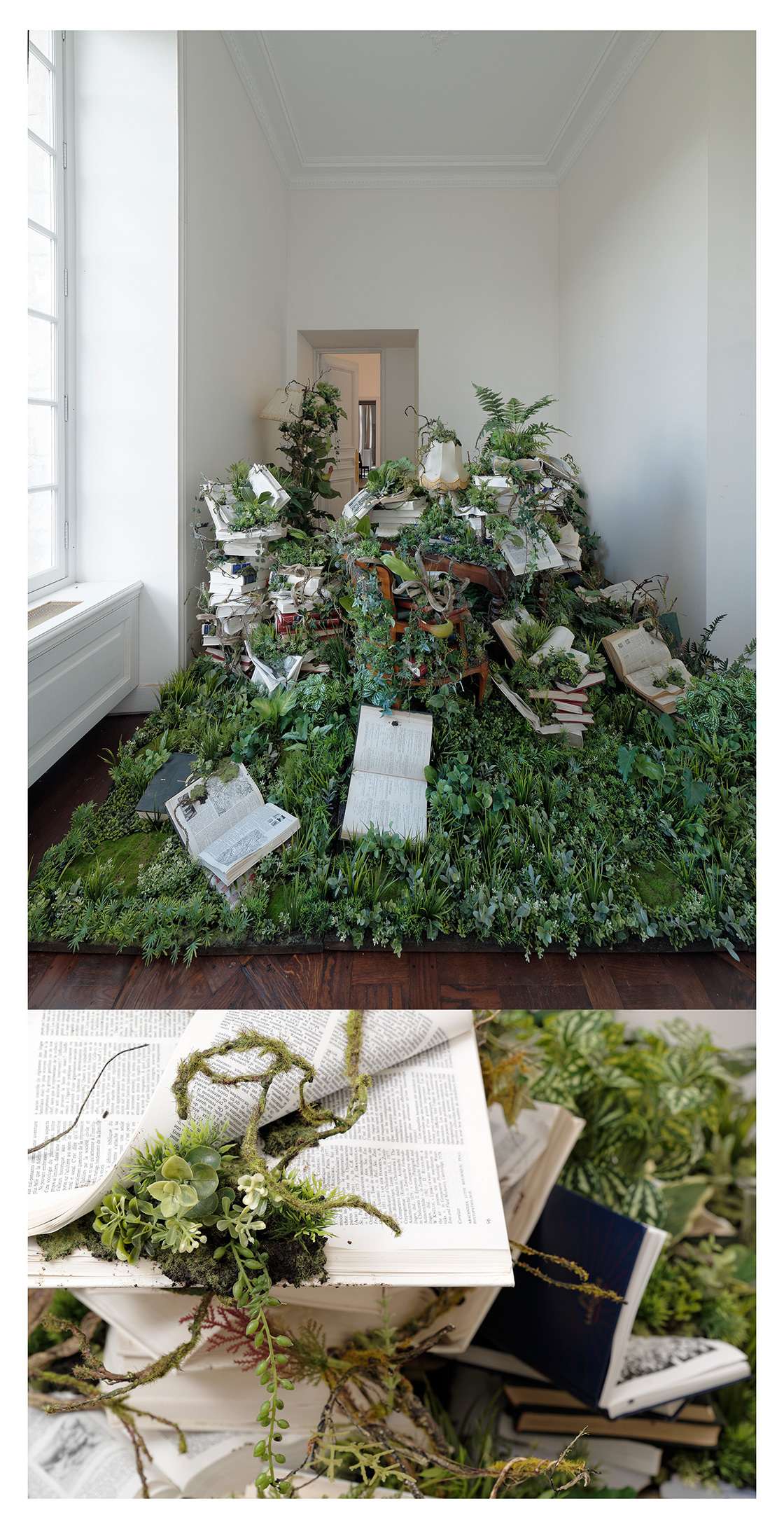 Your installations aren’t only impressive regarding the actual content, but in terms of scale as well... such as 'Still Library', which shows how nature forces its way back into civilization. Do you have an exact idea from the very beginning of which kind of technique you’ll employ for an idea? ||| Haha, “Still Library” is not that big! I have done much worse. Size is always linked to what you want to express and to how you want to touch your audience. Do you want to touch a certain body part or the memory? It’s a question of amplification. Like in music. You play a ballad for your girl, a cool thing for a group of friends, a powerful song for a stadium, or an easy thing for everyone to shake their butt to. There are many options, depending on the context.