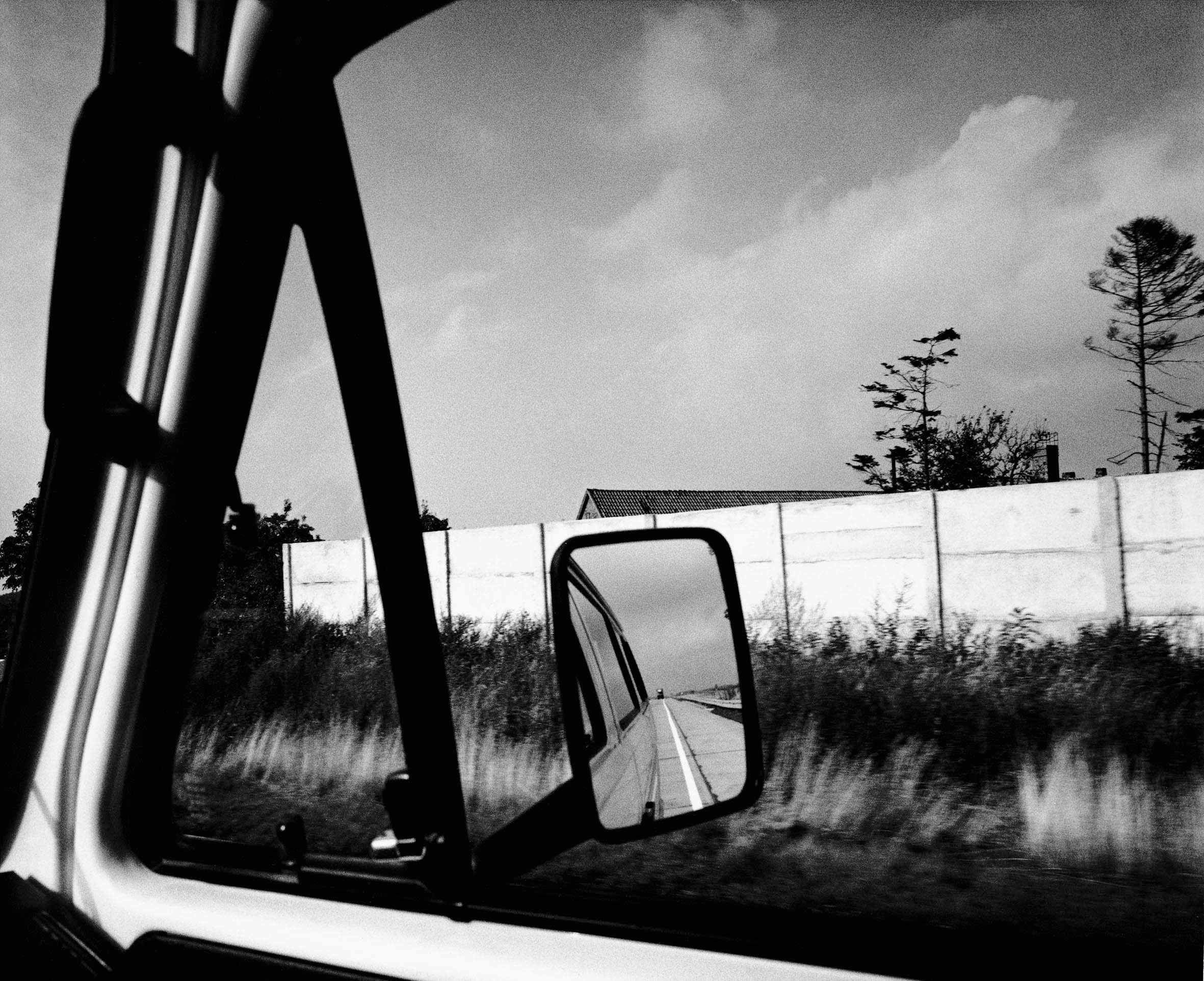 “Hans first showed it to me in the late nineties, around the time we first met”, Ghandtschi continues to explain about the series that was shot in 1984 and now sees its long overdue release as a book. “And obviously, I was immediately blown away, because I had never seen a comparable series of photographs before.” One thing that’s very special about “Transit” is the use of the car’s mirror, which Lützen and Pieler replaced before going on this trip: “Before we left, we realized that the side mirror was convex,” Lützen explains in the interview that’s included in the book. “Hans went to a glazier, who made us a normal mirror that we affixed to it.”