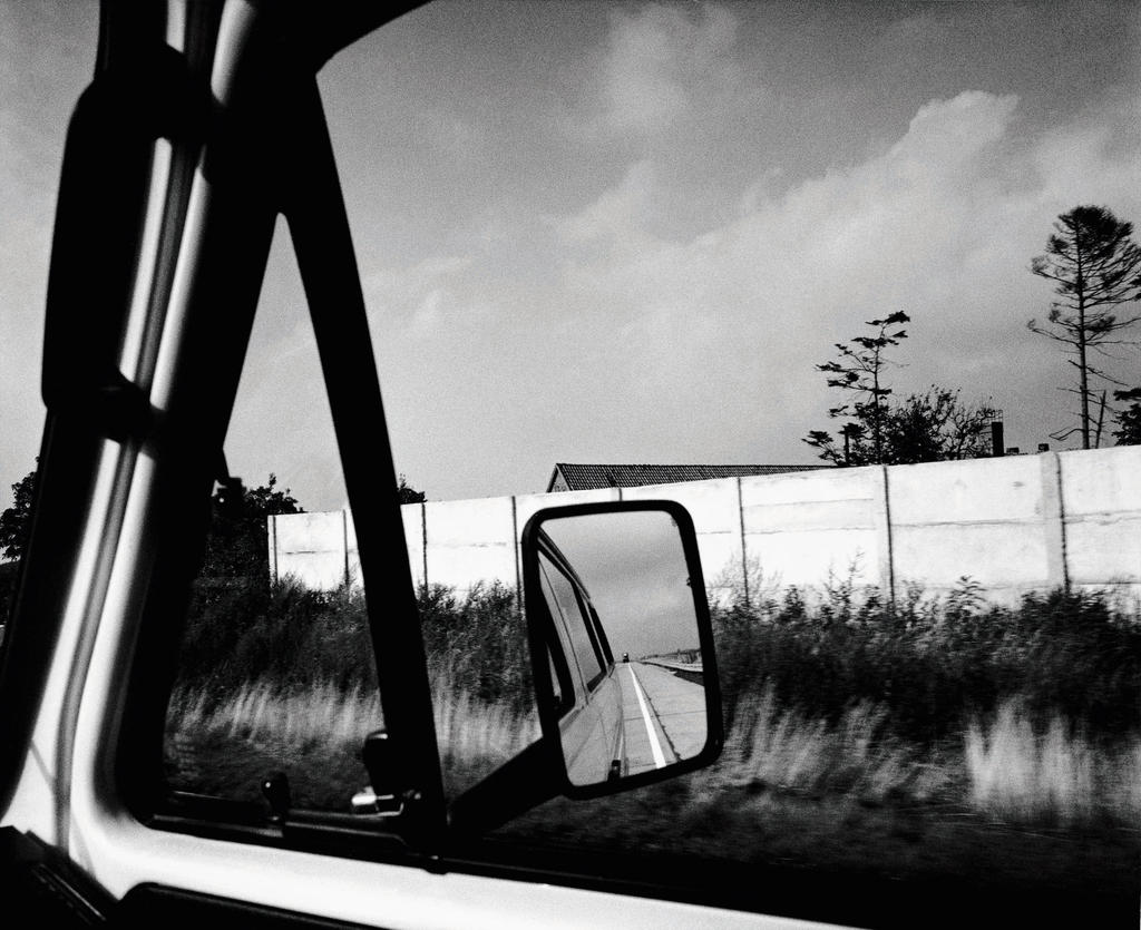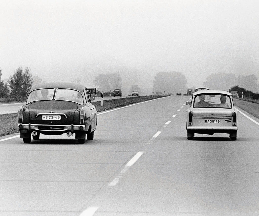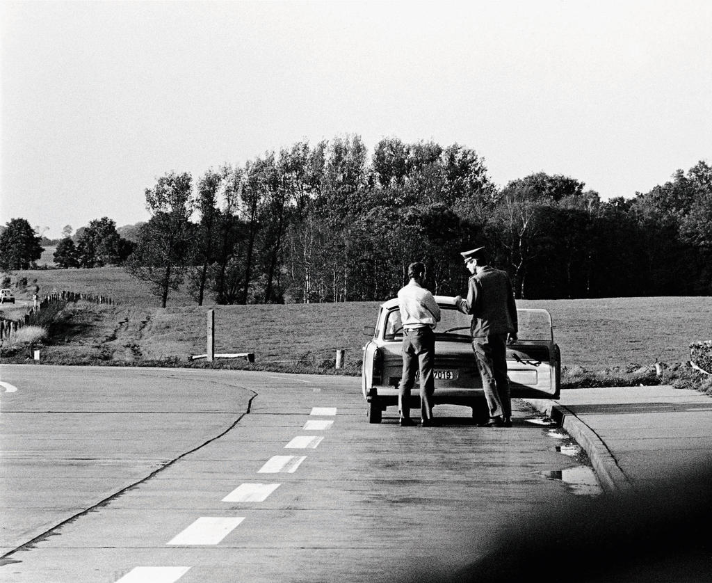 It’s fairly difficult to imagine, especially in image-obsessed times as these, that no one else broke the law while driving on the “Transitstrecke” – the “transit route” that used to link former West-Germany and West-Berlin like a hypodermic needle – that drivers in transit really didn’t take any photos, as this was strictly prohibited. And yet, the stunning “Transit” series by Hans Pieler and Wolf Lützen appears to be the only one of its kind: hundreds of sneakily shot photographs, secretly documenting the journey through the Soviet occupation zone, freezing the vibe of the trip with its passport controls, the somewhat threatening hints of another country and system surrounding this “Strecke”.