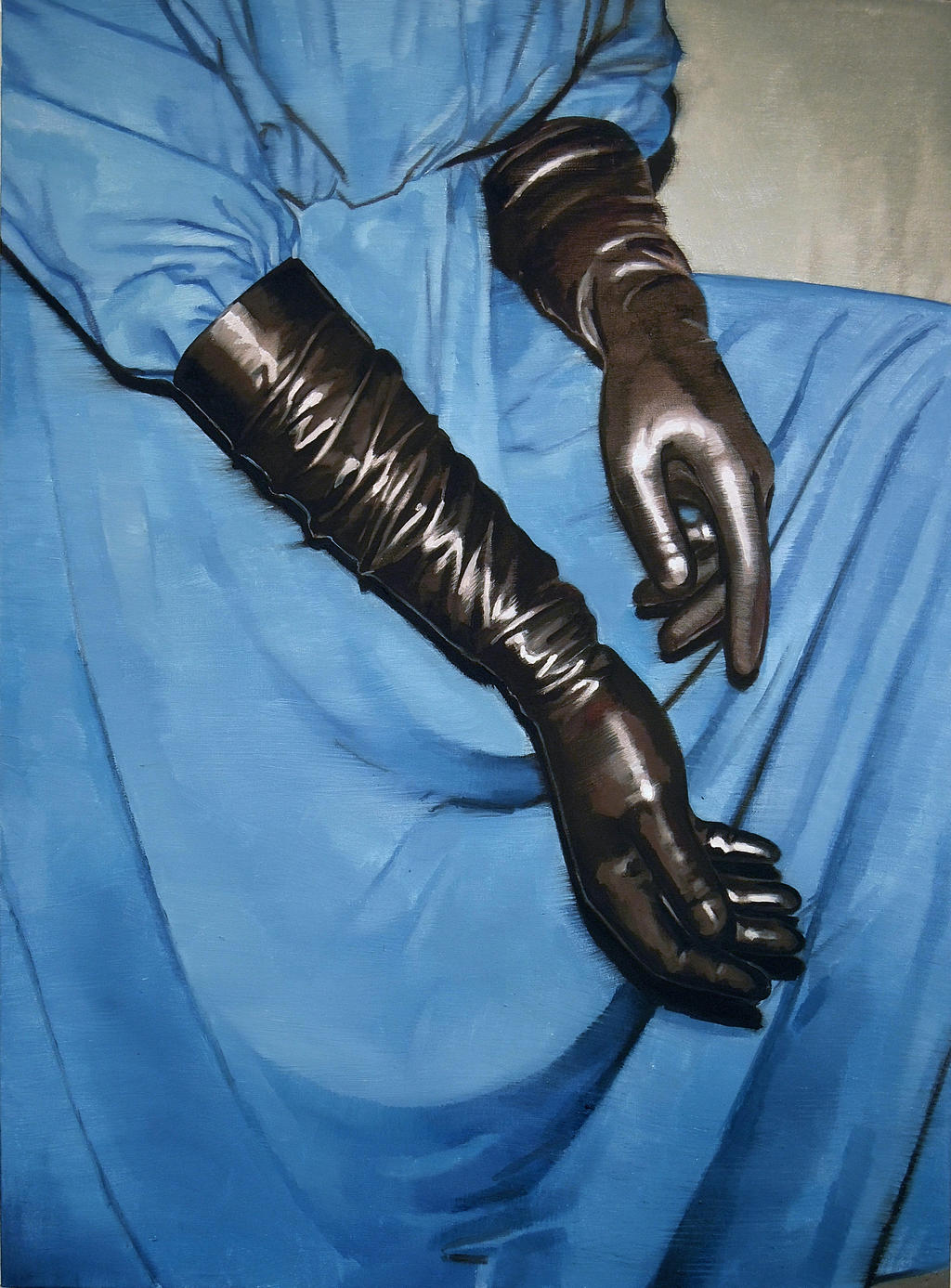 Gazing eyes and marked bodies. There’s something in the paintings of Brooklyn-based artist Kelsey Henderson that will subtly fill you with unease. It’s not necessarily the scenario she captured, but the things that must have happened before that very moment, where debauchery and an unhealthy level of overestimating one’s own capabilities lead to awkwardness and massive regret. Over the last few months though, her highly impressive work has undergone a slight change of direction, as she took a break from her photorealistic snapshots in order to juxtapose black and white images from the hardcore and punk subcultures with headlines from vintage porn magazines - stunning paintings that will hopefully lead to an extensive series in the very near future. Time for Lodown to investigate a bit further.