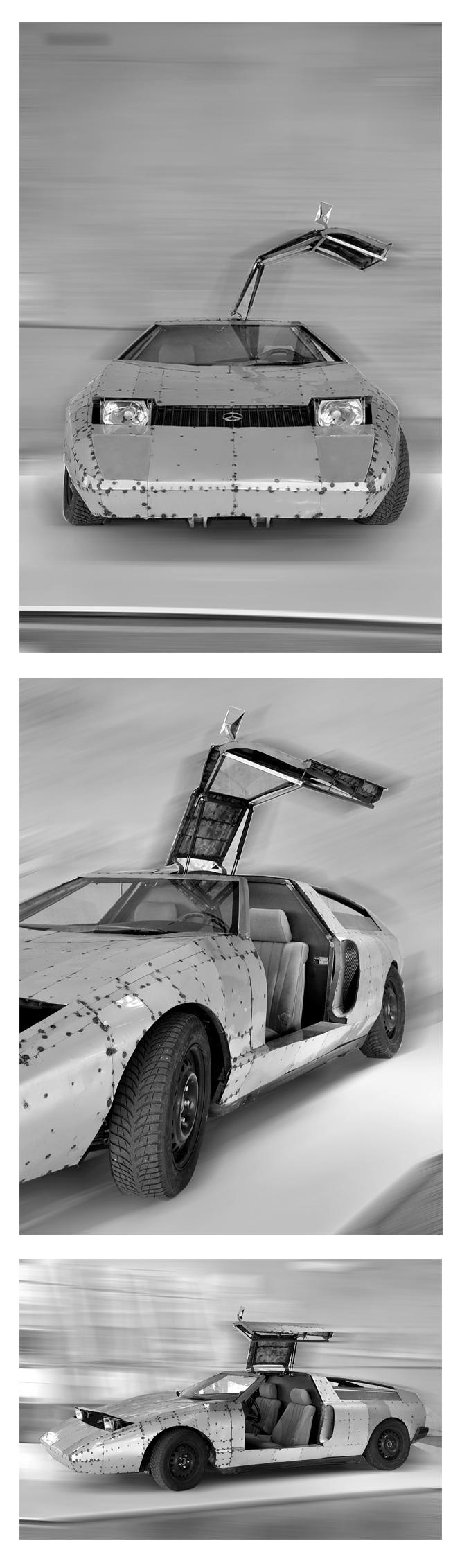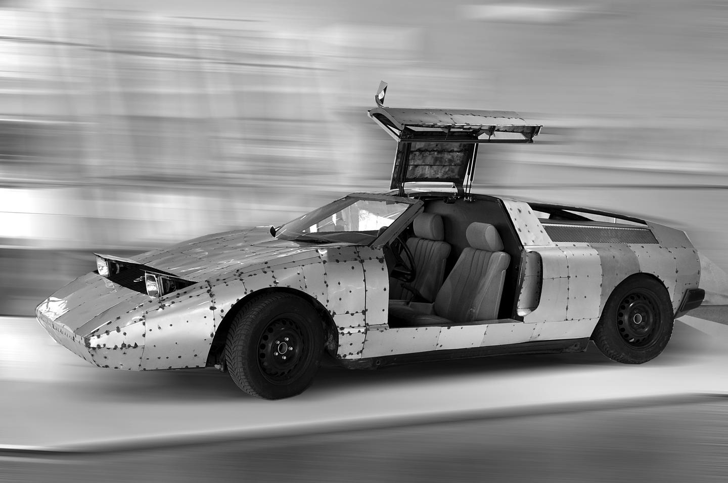 In case of Mercedes it was really the C111. Lastly it’s no less than an utopian car - what was initially a Mercedes design study became a mid-engine lay-out series that was launched in the late 60s during a car showroom event. The result being many blank cheques and preorders but in the final outcome it was it was never built because the production was way too cost intensive. I had known this car since I was little kid, even had the Matchbox edition, already back then it was an icon. So I had a request from VW and a commission from Mercedes to create a piece for their exhibition. Basically an homage to the C111. At that point in time my grandfather owned a 190 Mercedes - a regular model & I was allowed to have that one. So I was thinking - sure why not let me take my grandpa’s car and turn it into a C111. So razed off sheet metal siding, so that you could see the chassis & the motor. Everything was completely identical to the to the 190 & the B124 series. Then I went to Mercedes to measure out the C111 Prototype and reconstructed the chassis with the 190 type sheet metals, so we spent about four weeks of welding and then the car got picked up.