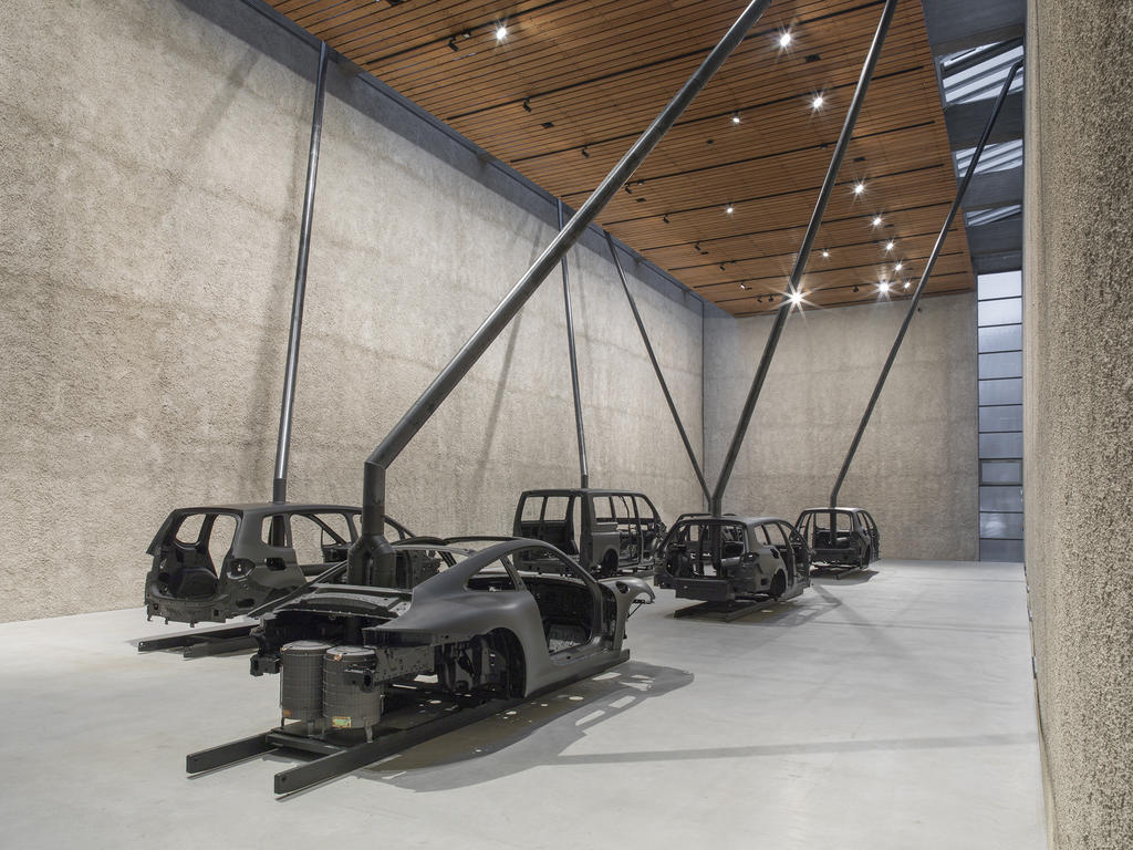 Exactly - they were all black and sometimes also varnished with durable colour, thermoplastic paint. Which of course looks pretty amazing - almost like graphic paintings in this room totally surrounded by black cars. That in itself is already very minimal.