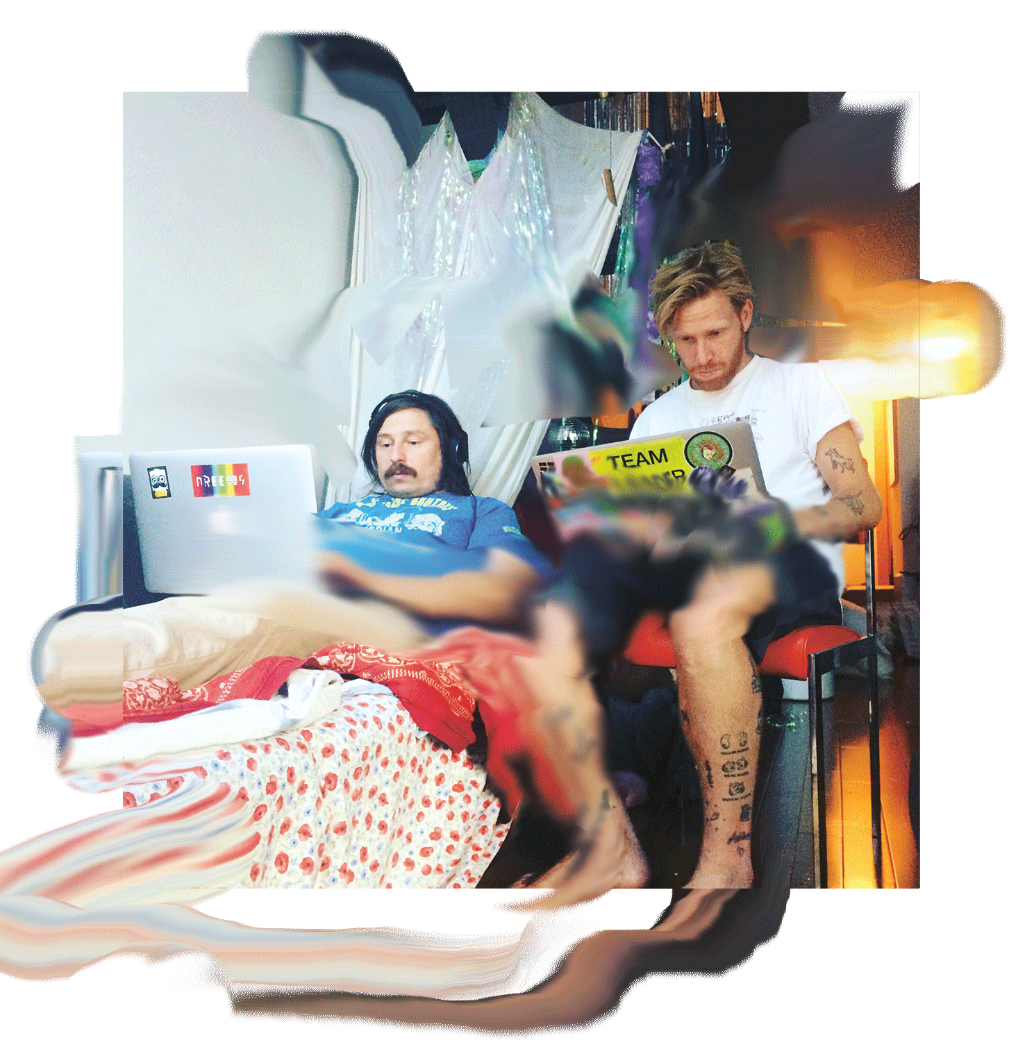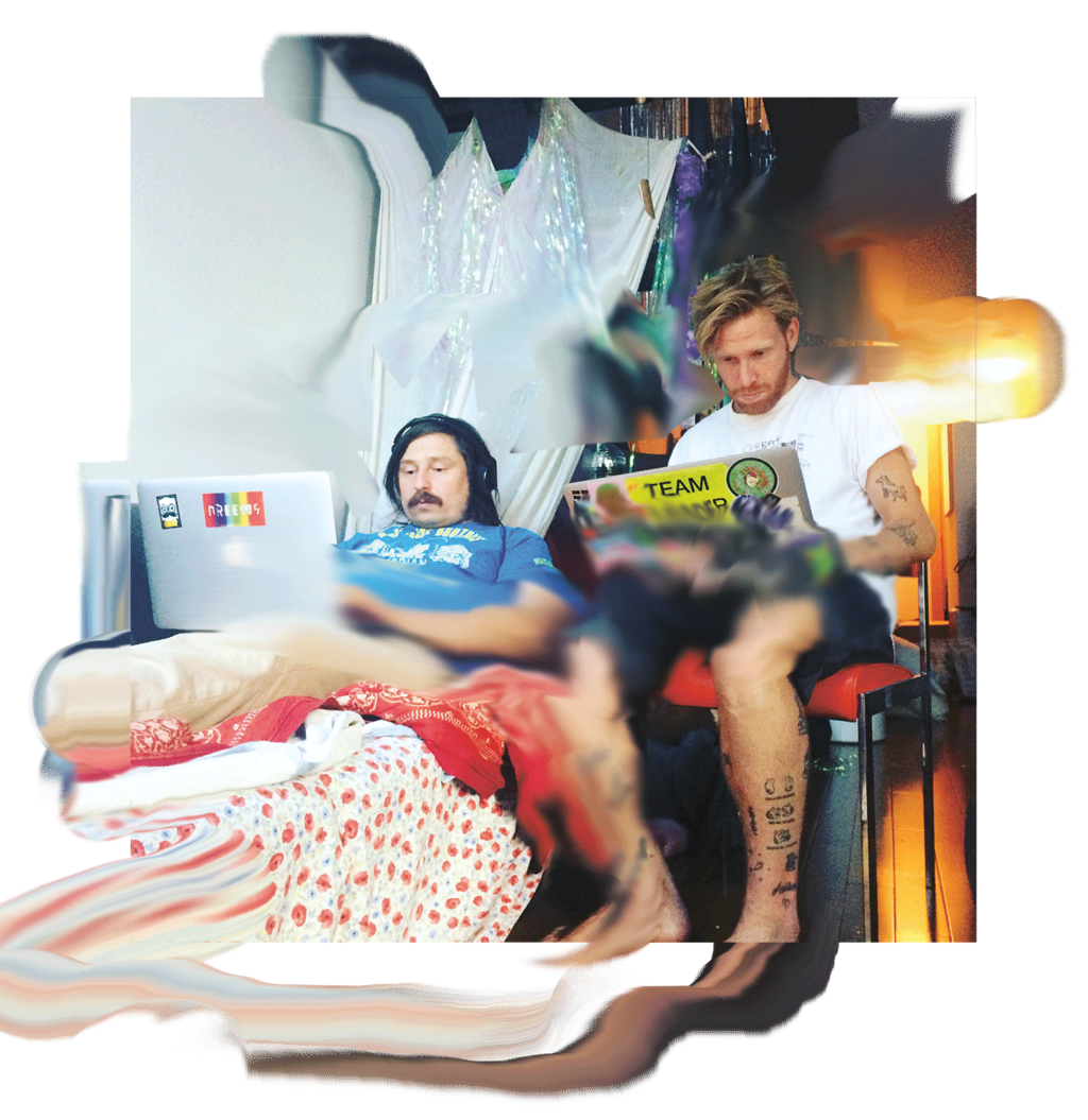 Coming back to our theme: Dropouts. There’s a certain hippiesque approach in MC. Hippies of the 21st century. Like a big community, everyone is doing stuff with each other, experimenting, and crafting. Your social media output gives me the feeling of the Cult hanging out as an open group, people coming in and out and you’re experiencing the parties together rather than just coming, playing, and leaving right after. Then there’s this psychedelic, almost new age approach in sound and vision. Would you consider yourself (modern age) hippies? ☯☯☯ TVP: My 10 year old nephew thinks I’m a hippie… he probably knows best. I’ve never really fit in too well with any group, I’m generally kind of a conflicted set of walking contradictions, but I love getting high, sprinkling cardamom on things, yoga, and value vibrational frequencies over worldly accolades, so I guess so?? ☯☯☯ Gus: I have no idea who i am. Does that make me a hippie? I hold no grudges, and have no prejudices however I also enjoy material things. I thought being a hippie meant you were supposed to grow your hair and throw away your computer, but here I am typing on it right now… And I got a haircut.