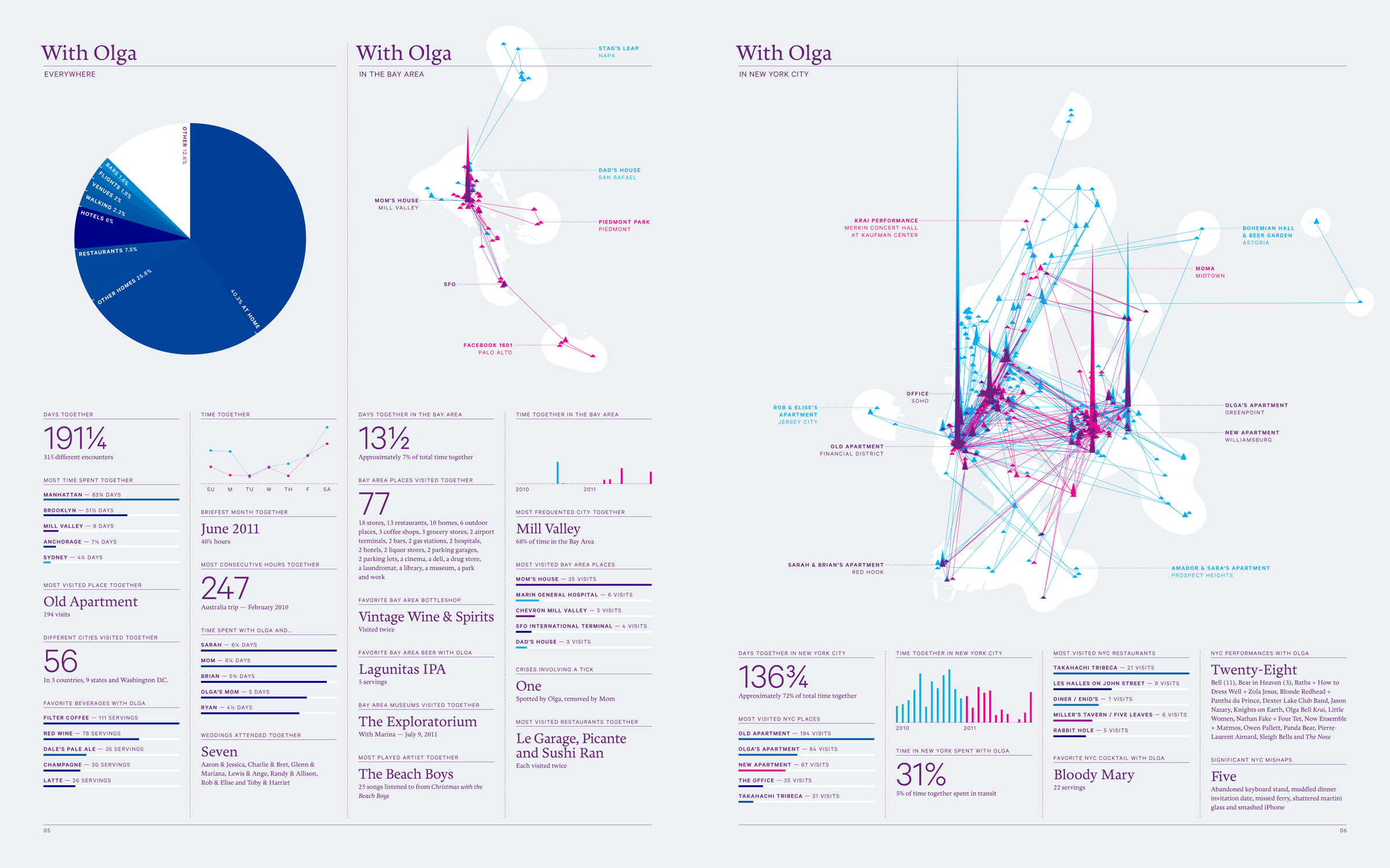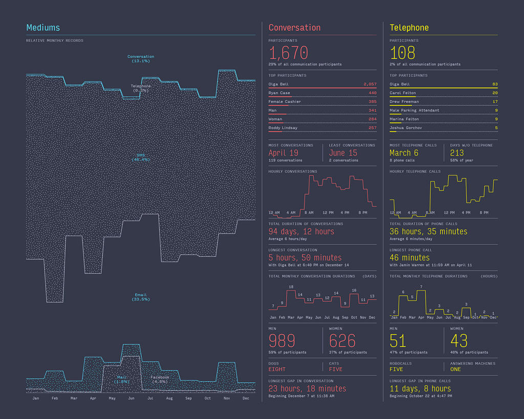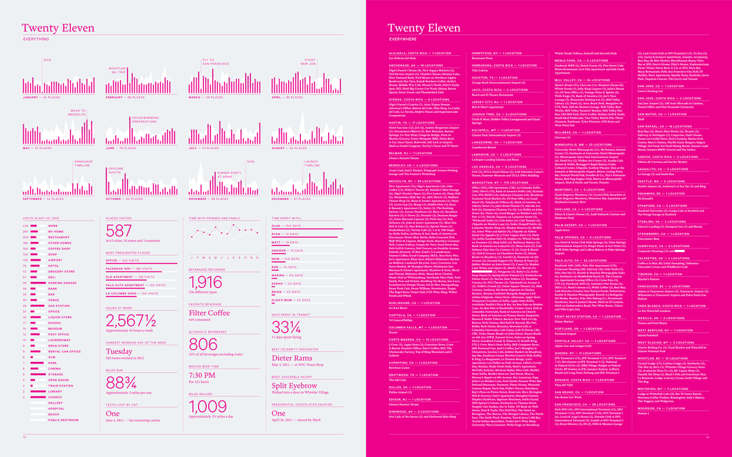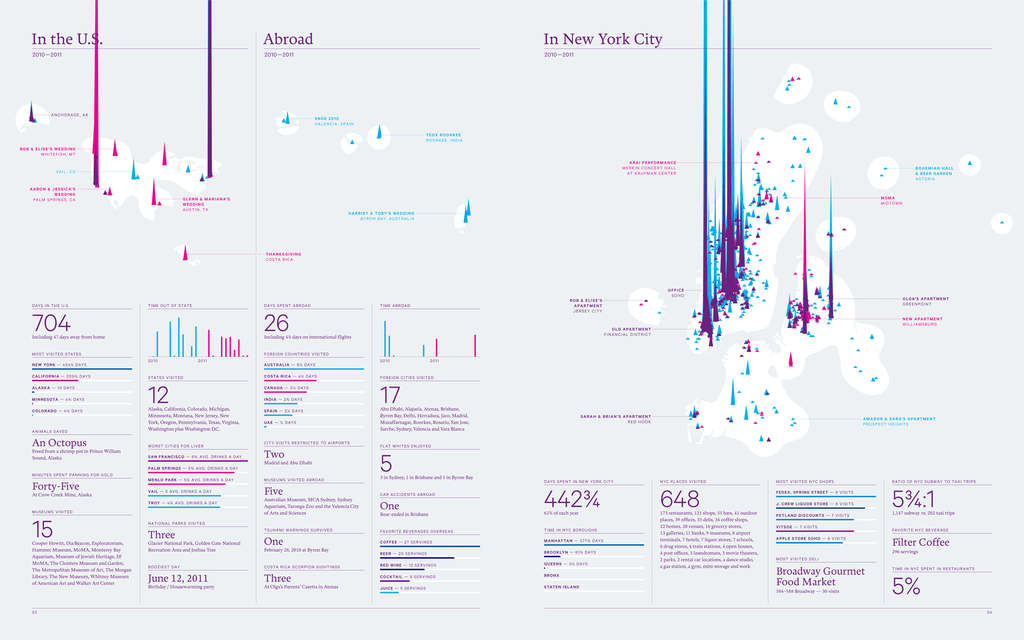 You’ve stated that you want to do things that haven’t been done before, to fill a need – don’t you think you sometimes create a need as well? I hope so. I don’t have a full understanding of what it is that people like most about my Annual Reports, but I like to think that when it works it acts as a mirror. It’s my hope that when reading the report, a viewer inserts themselves into the story and speculates about whatever question I’m answering, like how many beers they drank last year. If this is the case, then I am creating a desire for people to answer these questions about their own lives that they might not have had before.