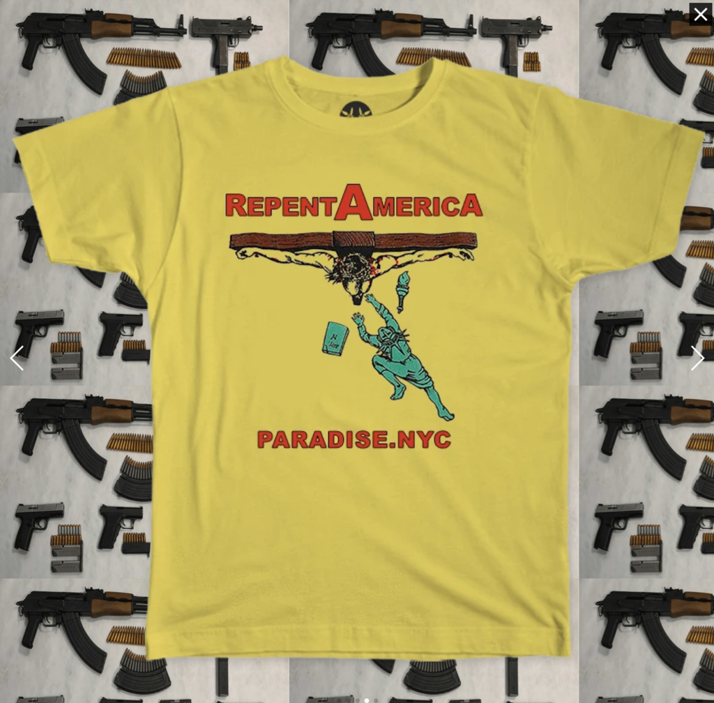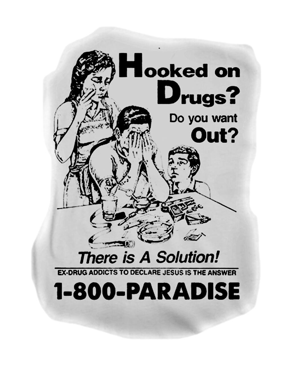 It actually started as ‘Palisades Paradise’ after I was skating with friends near the beach around some town called Pacific Palisades kinda near Malibu. It’s a rich area and it all seemed so artificial and inauthentic compared to the more urban places we mostly skated. Yuppies and jocks, convertibles, blondes, surfboards and frat boys were everywhere. It felt like we were in a bad 80’s movie or some kind of artificial paradise or something… We were all joking about it and when I got home I decided to make a shirt based on the concept. I eventually realized that just the word “Paradise” worked better and so that’s what we eventually named the brand. I had just moved to New York and the name Paradise was so common we couldn’t trademark it, so we made it PARADIS3 and/or PARADISE NYC. It’s a great word ‘cause it can be used and read ironically or sincerely (or both at the same time) in all kinds of situations creating a kind of ambiguity that’s really interesting to me. By using it with different images it can kind of capture and comment on the weird, conflicting, bitter-sweet feeling of existence.