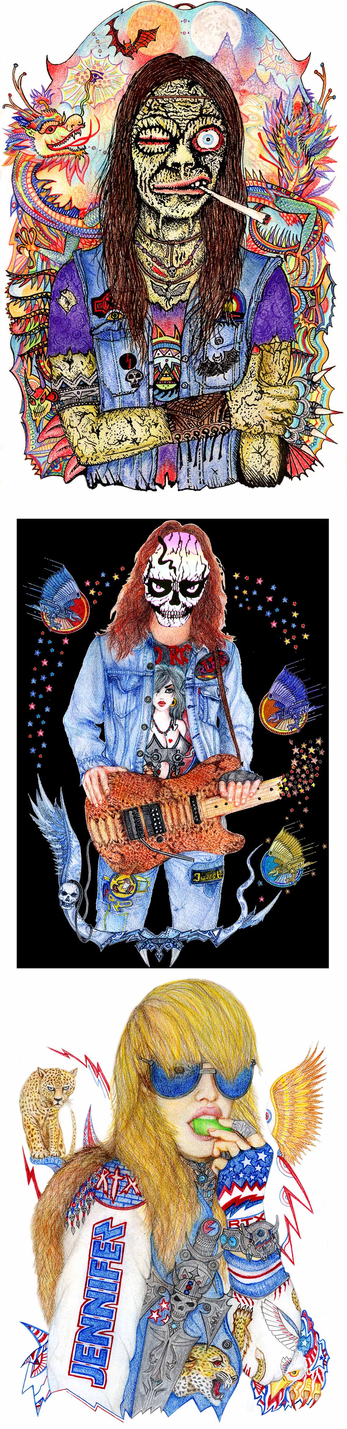 How did you hook up with RTX? ▶▶▶ I have been a huge fan of RTX and Royal Trux for years and I found out they had a MySpace site. So I opened an account to see their pics because you had to log in to view them. To my great surprise a little later on, Jennifer Herrema mailed me and asked me to do some artwork for "Western Xterminator” later re-titled "RaTX”. I am totally happy to have provided drawings for RTX, because I love their music and attitude, they are my heroes and the works I constructed for JJ & Co really have a special meaning to me. Later on, photographer Sasha Eisenman asked me to do a sketch of Jennifer for his "Friendshirts” label, which also inspired me and the result of the collaboration, is also one of my favourite images done by myself. Also check out "JJ got live RatX”, the badass newie from RTX, it rocks like hell and features another beloved contribution.