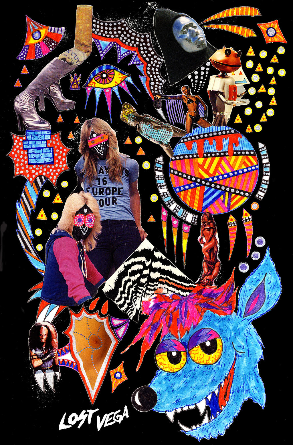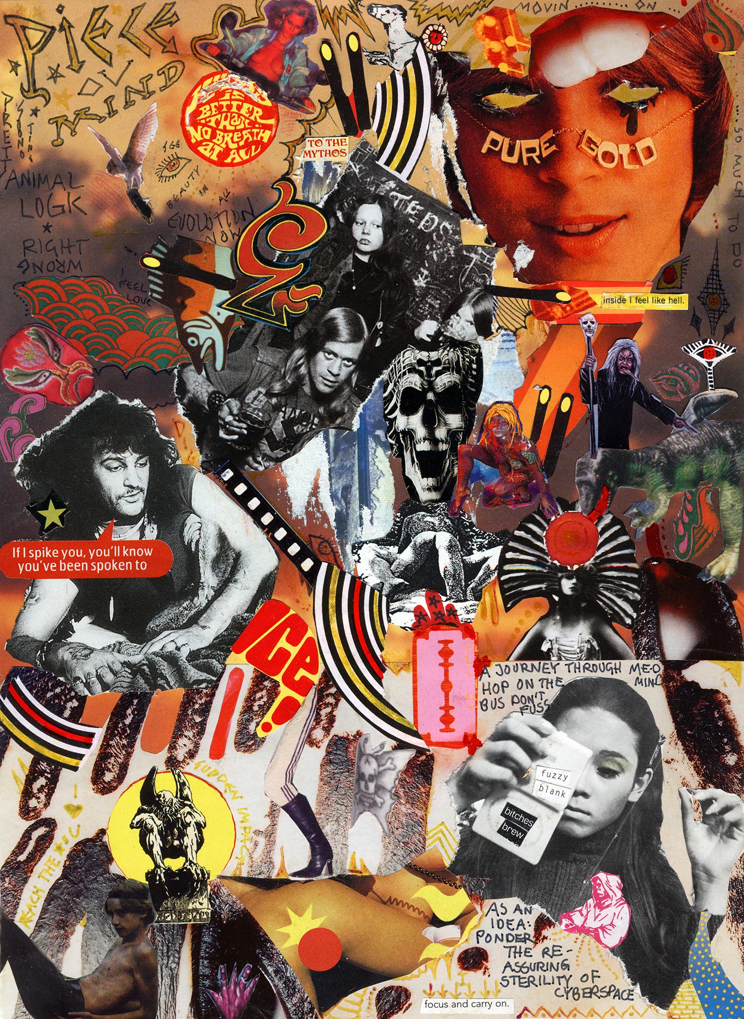 What came first, your love for collages or illustration? And what do you find the most fascinating aspect of collages? ▶▶▶ My love for drawing came first, but my association with collage is a kind of early one, too. I remember seeing some ‘Temple of Psychic Youth’ artworks in Tempo magazine which consisted of paper clippings, blood, hair and sperm amongst other things. I didn´t copy that, but I loved the idea behind it. Collage is fascinating to me because it is basically what William Burroughs meant with the Cut-Up method. You cut images out of print media and re-create and turn it into a personal object which gives the original pictures another twist and meaning. There is also something subversive and sinister about destroying a finished product and giving it your own voodoo. I hardly ever use the computer to making collages, I prefer sticky fingers from glue and messing around in a sketchbook!
