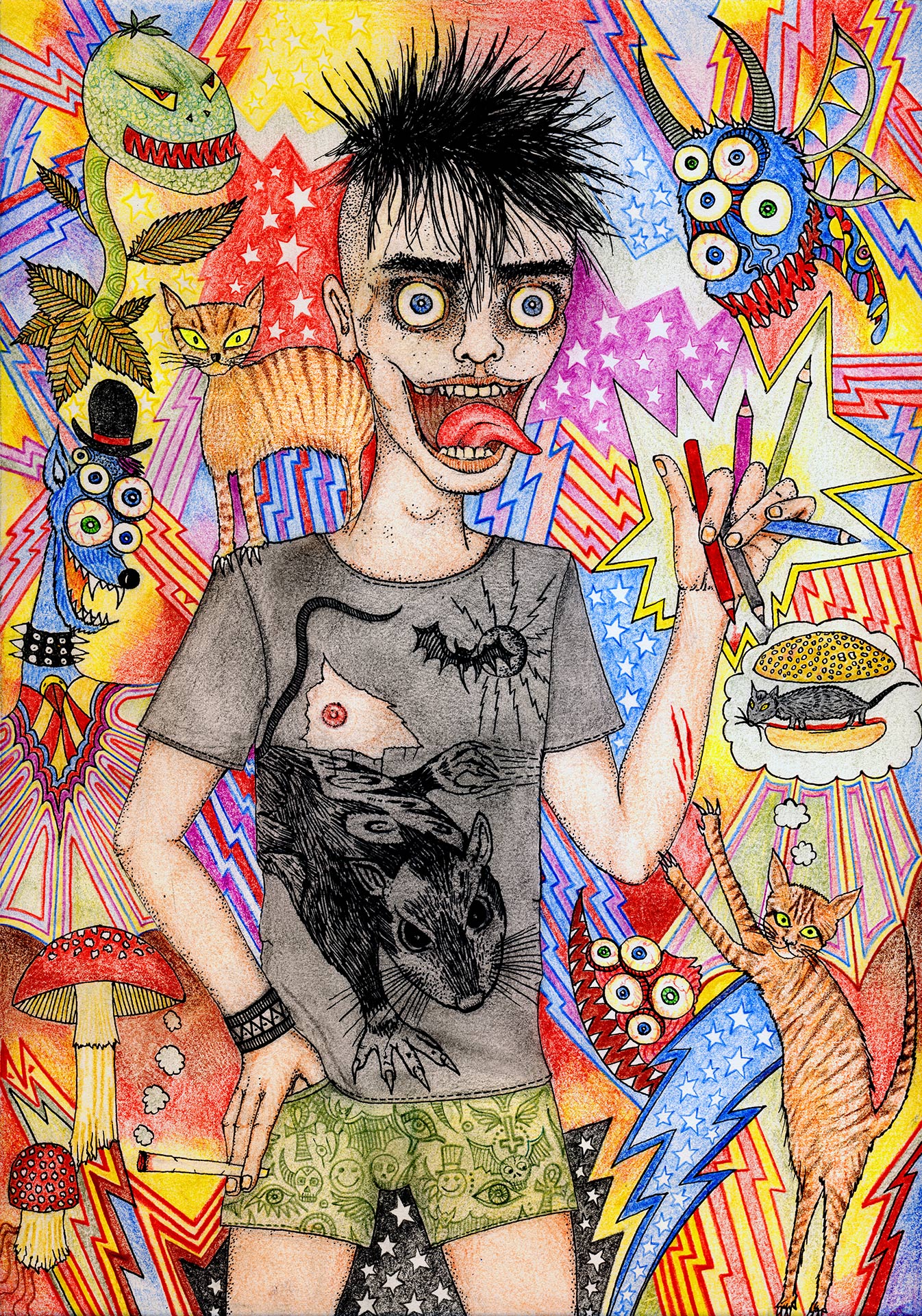 Your art is clearly influenced by Midnight Movies, (early) Heavy Metal and the NY school of pop art... why do you have such a soft spot for what the very majority of people simply call trash? ▶▶▶ I love the artwork of carnivals, the paintings on ghost trains or merry-go-rounds. I never look at that style as being inferior to what is so-called "high art”. There has to be passion involved. All art that is good has to be intense! Trash movies or the like, they are dear to me because they come from the heart, they are spontaneous, and done with just a tiny budget. They are full of life. Also there is that strife for perfection and attention to detail that I admire. I definitely have a soft spot for Joe Coleman as well, he is a genius!