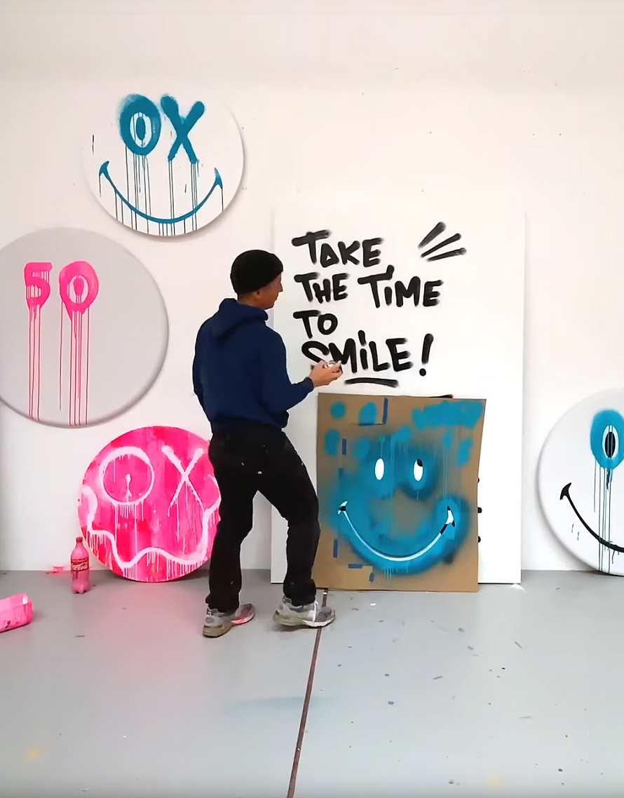 To pay homage graffiti artist André Saraiva was chosen to reimagine the iconic Smiley logo. Born in Uppsala, Sweden, he was growing up in Paris where his lifelong passion for graffiti began. Active in the early Parisian graffiti movement, Andre became widely recognised for his cartoonish characters and alter ego Mr. A, which quickly became his signature design and an iconic character in the fashion and art world. Besides being a graffiti artist, André has served as the creative director and owner of clubs, hotels and restaurants in Paris, Tokyo, London, Los Angeles, New York City, Shanghai and St Tropez. From 2011 to 2015 he was the creative director for L’ Officiel, a French fashion magazine. André ha s created a set of signature works of art in his Paris studio with his artistic take on Smiley, creating a truly limited-edition set of design assets for the collector’s edition project.