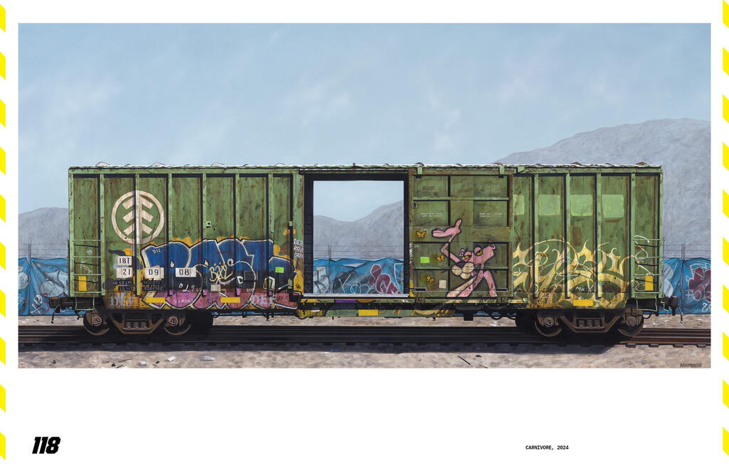 ADAM NORMANDIN… Los Angeles-based painter Adam Normandin might be known best for his ultra-realistic depictions of freight train cars, but this doesn’t necessarily mean that his paintings are rooted in reality. More than often placed in desolate settings, his trains (and automobiles) are covered in graffiti and tags, they’re corroded and bear testimony to constant usage as people and goods get transported to destinations others decided to be worth heading for.