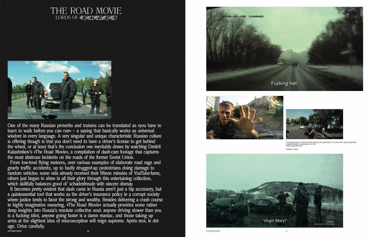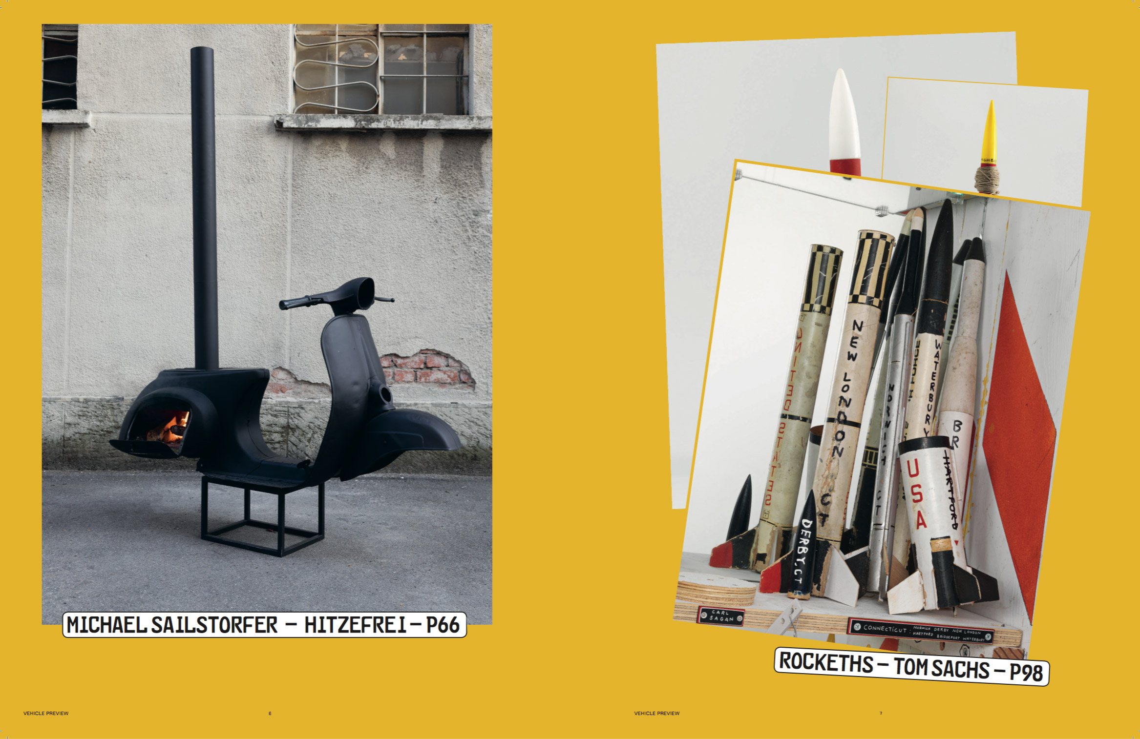 Vehicle. Vehicule. Vehikel. See, the term itself already suggests that this issue will be about different, and predominantly motorized, forms of transportation - and there will be bits about the fetish of the vehicle itself, don’t worry - but in actuality it’ll be much more about getting from A to B, an examination of artist’s positions about spiritual, intellectual and physical mobility. It’s about the transportation of information and ourselves within this ever moving networks we find ourselves tied in. Specific rituals and religion can be vehicles for entering stillness and getting certain ideas across, but the same thing can be said about a canvas. Traveling defines our reality, doesn’t matter if you do it the 5G way or by using the excursion train of thought. Every presence has a million turning points - sometimes they lead to dead ends, sometimes to major breakthroughs. We derive from the past, but force ourselves to tell our own future. Science is fantasy and art is friction. Information is for everybody, you simply cannot outsource democracy since technology has the potential beyond controlling our everyday lives. There’s a reason we all travel more than ever before, right? Phew, this was getting a bit too much back and forth through the doorway of my upper head, wasn’t it?! Anyway, here’s another new issue to make your legs twitch and put your grey cells up there into positive vibration, another documentation of international artistic activism against all odds which just loves to feed the mainstream with grassroots craftsmanship. Nobody moves, nobody gets hurt? Wow, what a boring world this would be.