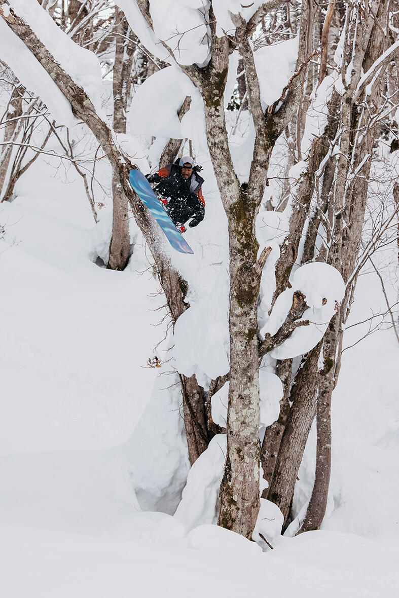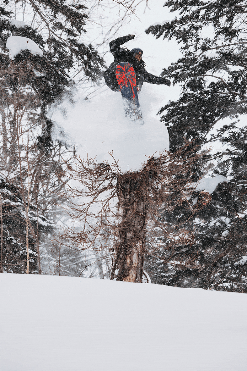 “Yeah, I don't know. I really I think it looks fine, but it's a lot to move around and get it popping when it comes to jumps and stuff. But just riding powder, oh it floats. It truly does feel like a boat, like floating. Honestly, I need to rip it more, like steep slopes on that thing are so sick. I found a little spot, like tight trees and stuff, and it almost skates. I remember that’s the most hype I got the whole trip. We were riding out of the zone and I was in this little area where it should not be. And it was just ripping. And I was like ‘Oh my God, this thing is soooo sick’. It just floats differently.”