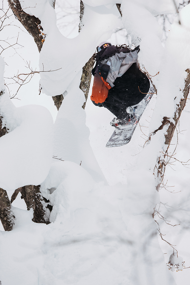 “Yeah, it's a lot to move around. It’s a lot on normal groomers and in the park. But in the backcountry, falling on that thing, is not fun. It's a big ass board. But riding it, holy shit, was so much fun. And just a good learning experience. The reason I ride that board is for the challenge. It’s something new, something refreshing. For me, it makes me think differently. And I think it did the same thing in the backcountry. I've done so much of it in the parks, and I just wanted to bring a new light to it and take it where it really should be and where people think it should be.”