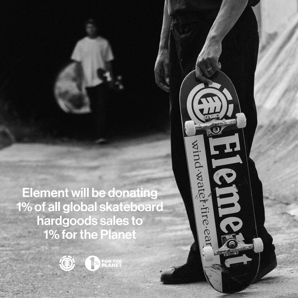 At Element, the core is still defined by skateboarders, adventurers and creatives; a community of passionate people who care about our planet, our climate, our present, and our future, self spoken. Expanding their actions on earth-conscious initiatives since 1992, Element is making steps in the commitment to the fight against climate change. Element announces a partnership with 1% for the Planet for our global skateboard hardgoods sales.
