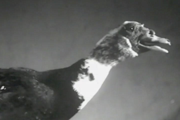Californian chickens and a kind of evil looking duck step into the spotlight in Aaron Rose's Warhol-inspired mock screen tests.