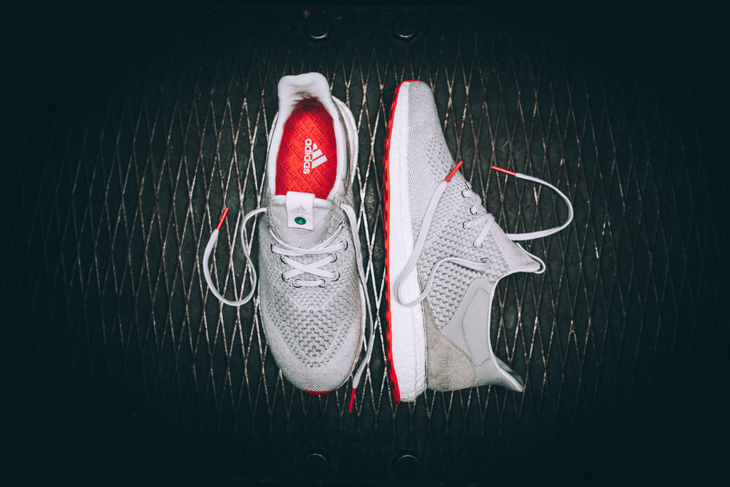 Be prepared with Solebox’ UltraBOOST edition, designed by Hikmet Sugoer. The district’s coat-of-arms is the inspiration for their execution and comes in different shades of grey, that are complimented by the comfy white midsole. A hint of green and the strong red outsole contrast the smooth wool and suede upper. This version is offering extra freedom without the TPU cage while enhancing the shoe’s clean aesthetic. The crisp Solebox debossing on the shoe’s heel cup brings the icing on the cake and completes the look.
