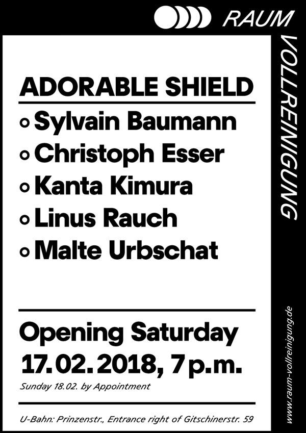 On Saturday 17th of February at 19h Raum Vollreinigung would like to invite you to join the opening of “Adorable Shield”, a group show displaying works by: