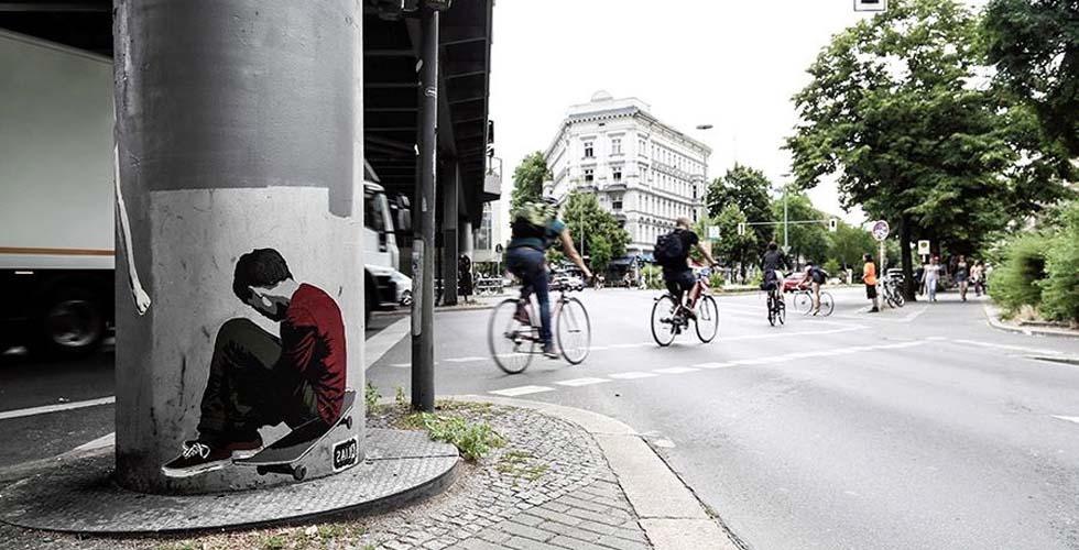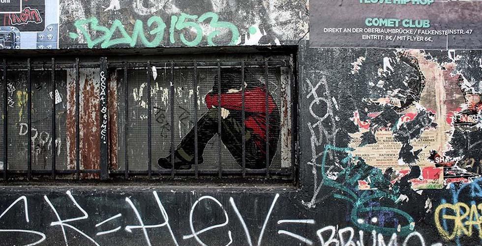 He has never been one of the loud ones, but his art has always been of an intense presence. Touching passers-by and visitors with his highly emotional imagery placed right in the middle of the roughness of daily life, Alias left his significant traces all over the streets of his hometown Berlin and made himself a name with the predominantly black and white figures of lonesome, isolated children and teenagers struggling with the harsh realities life has to offer.
