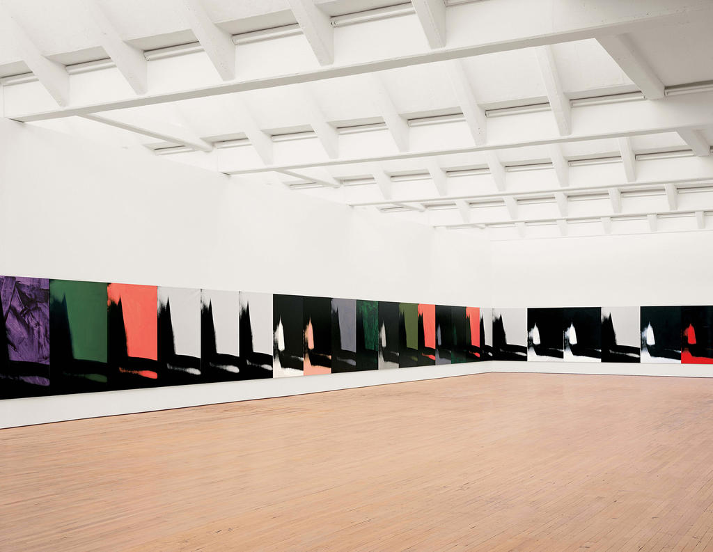 The monumental artwork 'Shadows' (1977-78) consists of 102 large format, silkscreened panels that reflect some of Warhol's explorations with abstraction, through his signature palette of bright and cheerful hues which characterized a large part of his work.