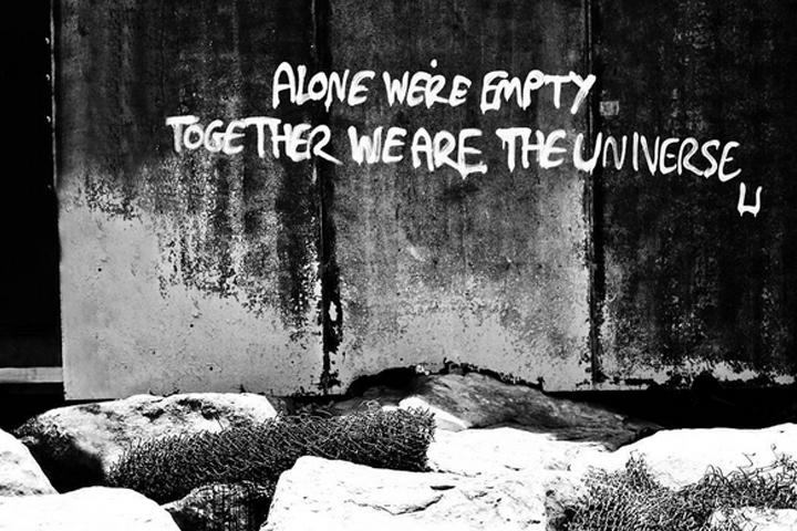 “I came across this piece around town a few years ago. It's simplicity spoke to the beauty of its message and made me curious about its origins. The words ring true especially on a day like today. Not to say that emptiness follows from being alone but that some mix of connections, collaborations, friends, family and positive vibes are essential if you want to stare the world right back in the eyes and make your mark.“ - One5Fame