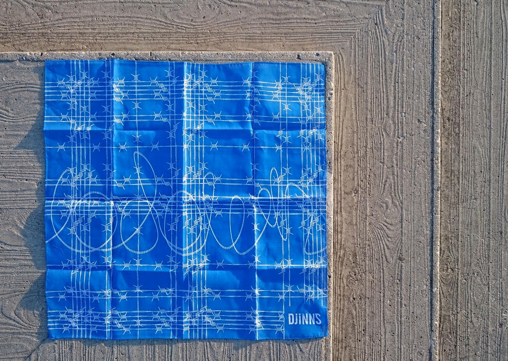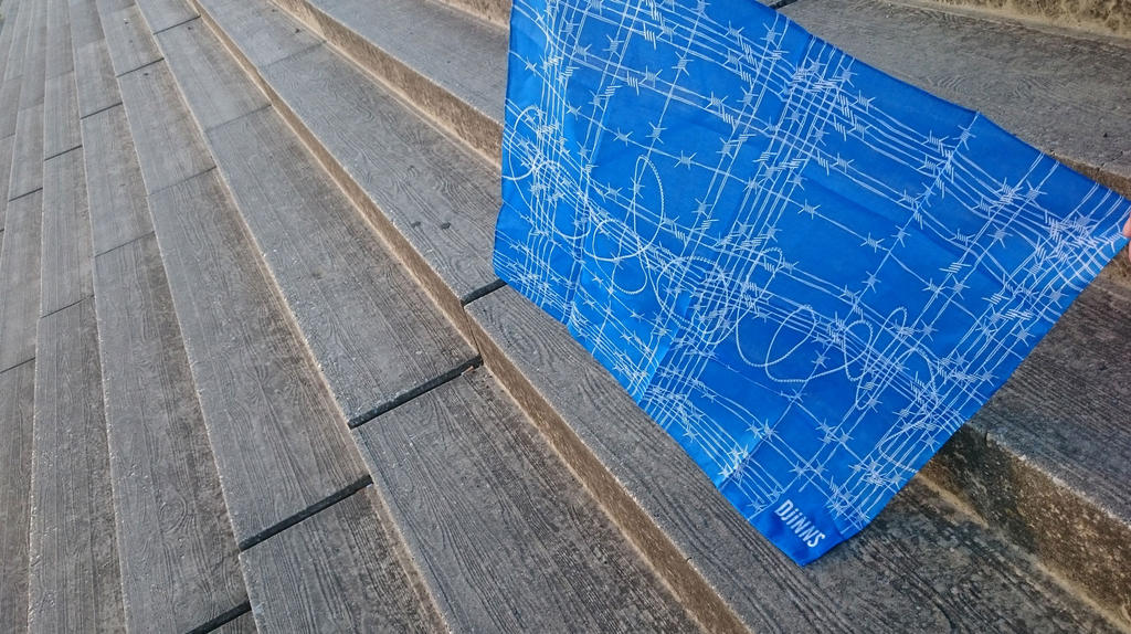 Since the early seventies the gang-related rivalry between the Crips & Bloods made the color choice a little harder depending on the area you’d bust your steez. Tupac’s bandana tied into rabbit ears remains probably one of hip-hop's most recognizable styles. The paisley pattern dominates the design of the bandana, but alongside the celebrations of Lodown’s 100th issue, a rare barb wire design by Marok can be spotted. We partnered up with Djinns for the bigger version for more wearing options and to practically use it as scarf on the bike.
