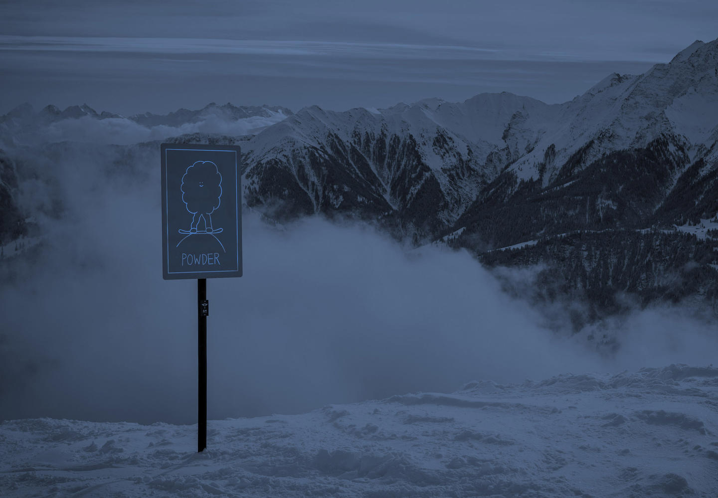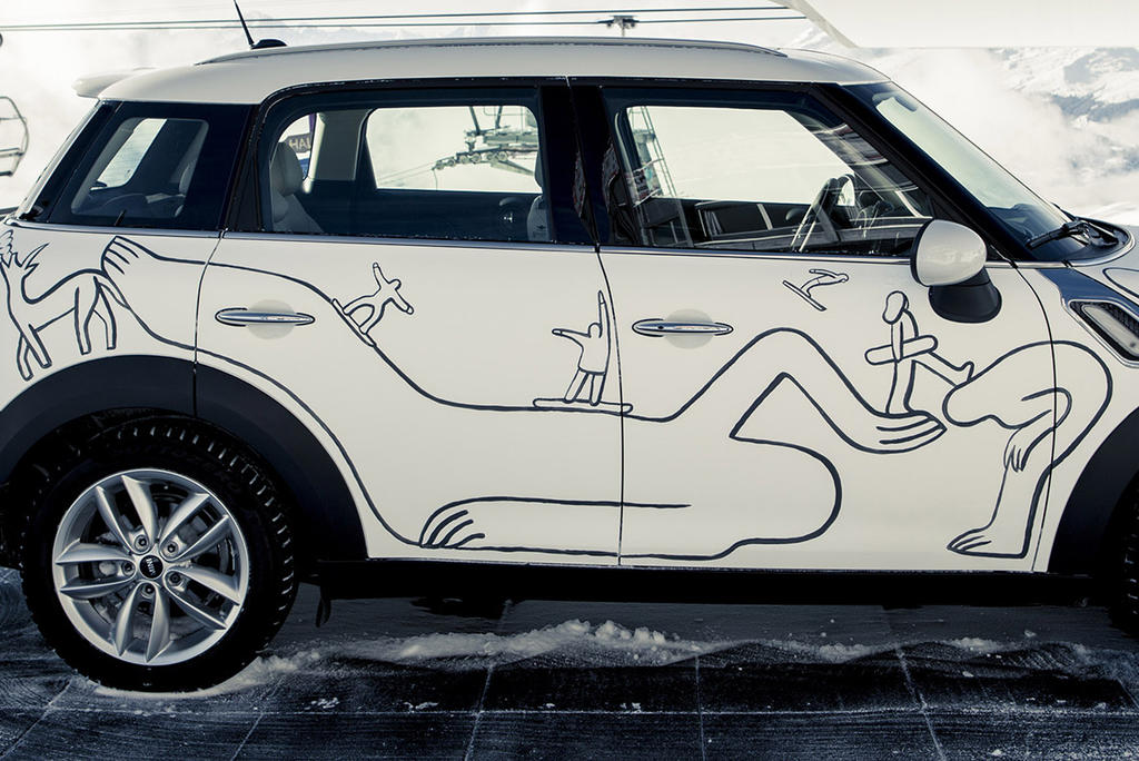 As another visual candy to round up the whole event MINI invited the American artist Geoff McFetridge to create unique signage for the slopes all around the LAAX resort during the BEO. This „MINI in the MOUNTAINS“ open-air art exhibit was viewable by visitors throughout the event.