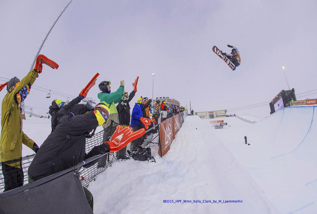After a hard two days battle and fighting heavy weather conditions 31-year-old Kelly Clark and 26-year-old Iouri Podladtchikov became the Halfpipe Champions at the 2015 BEO. The winningest halfpipe snowboarder ever, Kelly Clark (USA), took first place honors and a record sixth BEO win, Clark’s run included a frontside air, backside 540 mute, frontside 720 indy, Cab 720 indy, crippler stalefish and a method air.