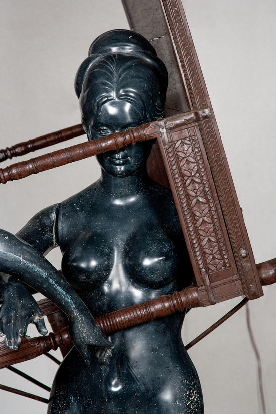 For her first exhibition at Hauser & Wirth Zürich, Indian contemporary artist Bharti Kher unveils a new ensemble of sculptures that have been growing in her studio over the last few years. In line with earlier studio practice, Kher assembles, juxtaposes and transforms found objects that are witness to their own histories. Wooden wheels and architectural remnants, mannequin body casts and pillars all clash in mis-en-scene of dystopia and grand orchestration.