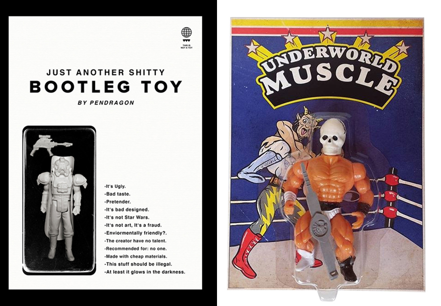 “There’s this character in Toy Story called Sid”, says Pendragon – a Mexican-born, Cologne-based ‘bootleg toy’ maker, whose real name remains a mystery. “He’s this brilliant, edgy little kid with a black t-shirt. He destroys his toys and rips them apart and creates these mutant monsters who terrorise all the normal toy characters in the film. I am exactly like Sid.”