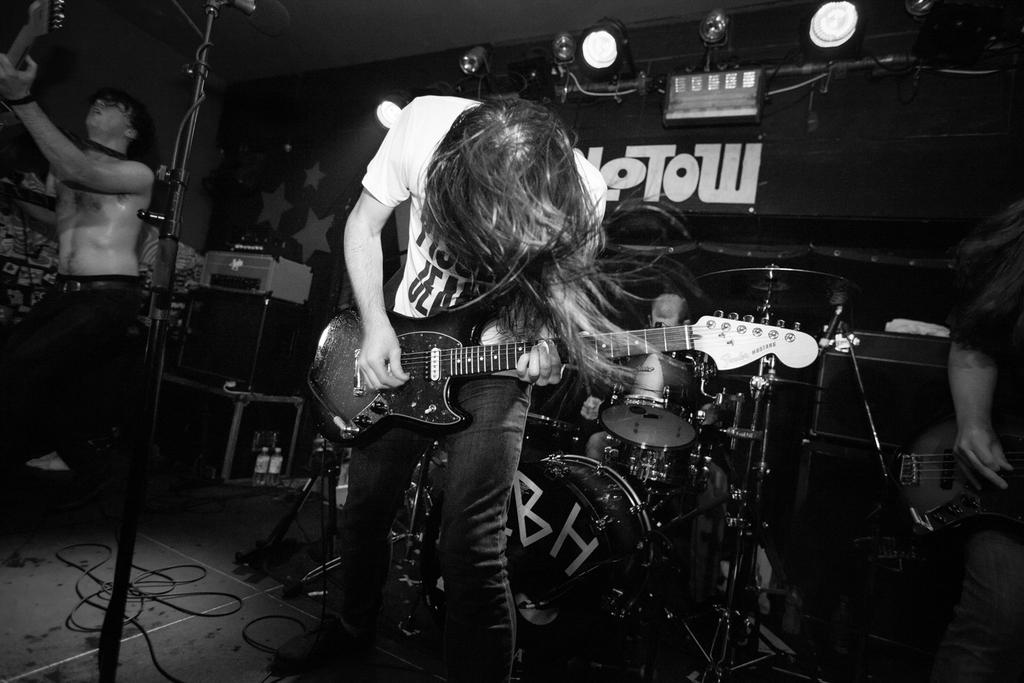 A lot of the bands on the local Leeds scene were really influential to start with. Not necessarily musically, but just the DIY ethic. I was really inspired by a band called That Fucking Tank. They made us realise that you can just get on with it and not worry about getting signed or what people think, just doing it for your own enjoyment can be pretty infectious. There are a few bands that we all loved growing up, we had that in common even though we didn't know each other. The obvious ones are Nirvana, Rage Against The Machine, Black Sabbath, Led Zeppelin, ACDC. When we first started we were all listening to bands like Lightning Bolt, The Jesus Lizard, Refused and Shellac. That was what we were kind of going for when we started, that angular, discordant riff based music. We ended up sounding nothing like any of those bands! Also, other bands have been really good to us along the way, taking us on tour and showing us the ropes. We couldn't have done it without bands like Blood Red Shoes, Future Of The Left and Biffy Clyro.