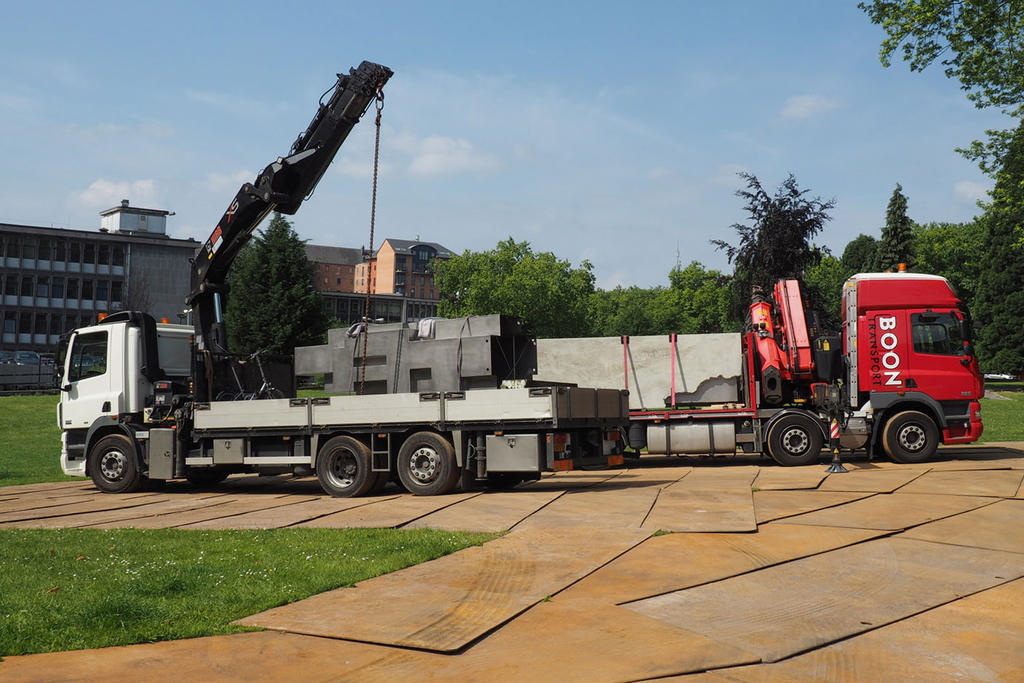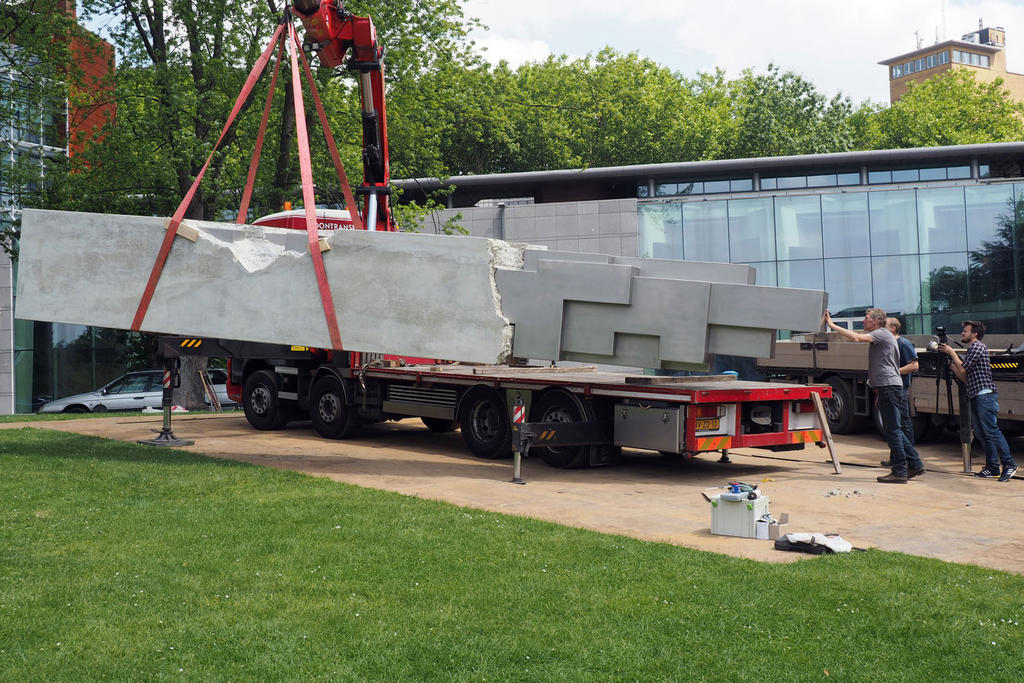 Innovation and inner strength are represent in the sculptures by some metallic bodies, which seem to burst out of the concrete, and are push by an unstoppable force while simultaneously forming the complex core of a minimal form. The letter A incorporate in the metal structures is a reference to Tellegen’s pseudonym: Delta.