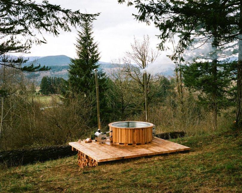 Called the ‘Cinder Cone’ the multi-platform tree house structure, thus complete with skate bowl and a wood fired soaking tub, was assembled by professional carpenters, while other helpers learned on the job.