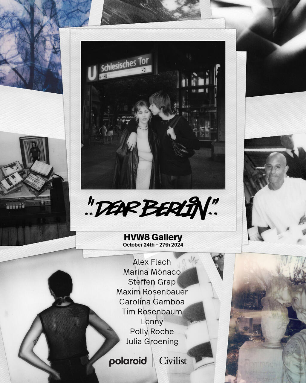 Civilist founder and self tought photographer Alex Flach brings together a collective of young artists to explore the vibrant spirit of today’s Berlin through the raw and unfiltered medium of Polaroid instant photography in the upcoming exhibition, DEAR BERLIN.
