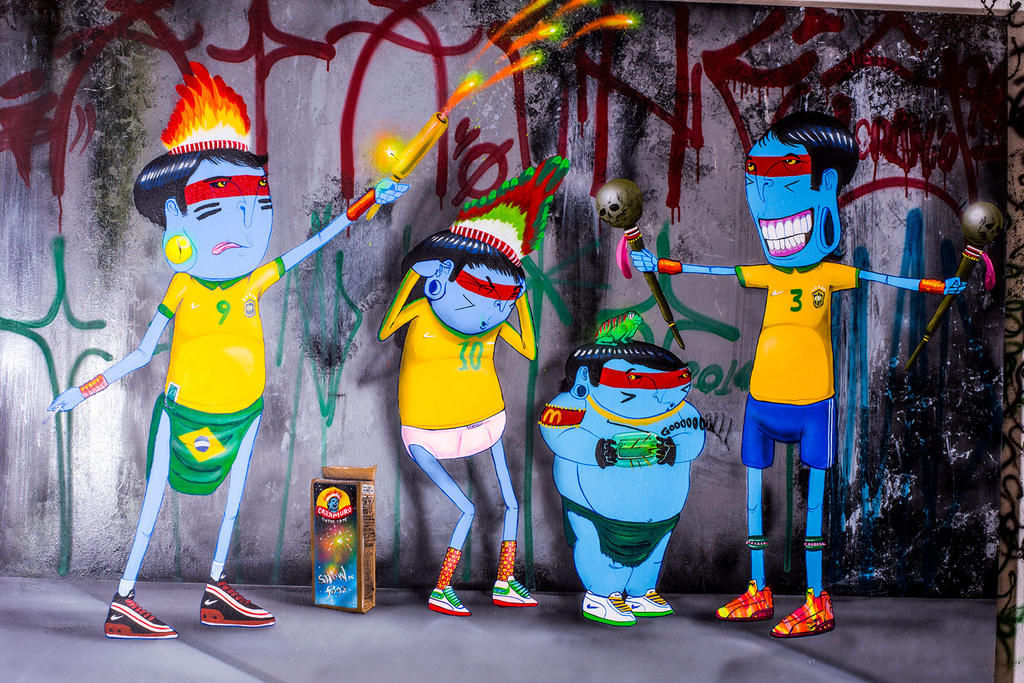 Over the last year I’ve been working on a few paintings. The World Cup is something everyone in Brazil would to love to have, because we are crazy about soccer, but I’m sure you’ve heard everyone here is doing their own parade against the government, now that it is clear that they have broken one more promise to make security, health, education and public transportation better to all of our people. Now people see that they only built big soccer stadiums and the rest of all the other projects just stayed in their plans. There is no investment at all to make our country a little bit better.