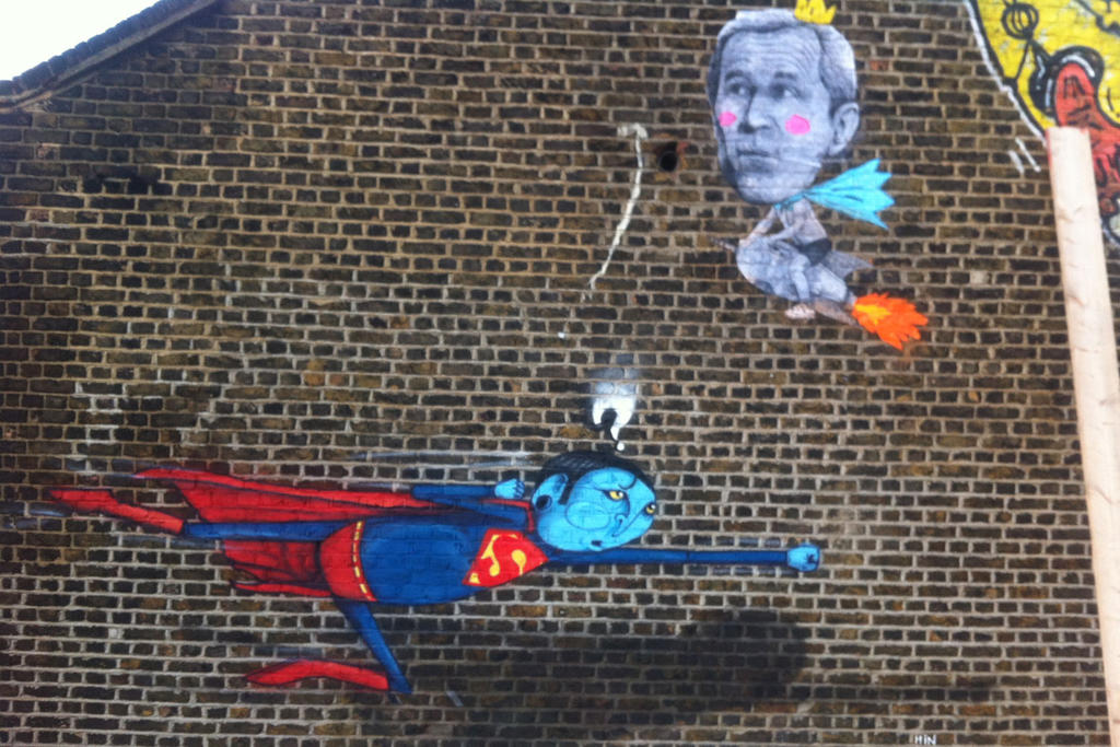 This is the symbol of consumerism to me, agrobusiness destroys our land. It’s a huge brand that has created this character to make kids believe their food is cool and good for their health. I use this symbol to criticise two things, one is the omnipresent consumerism and the other is corruption.