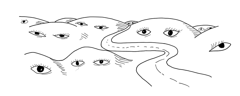 “Humor sometimes allows us to say the unspeakable. To diffuse the nightmare and yet still somehow view it face on. So these seem to be about how it is to live right now. In this New World. I am trying to imagine ways we can respond, ways we can connect—via bodies or faces made or words, as rivers of mouths and eyes, as a village embodied as a person, a body. These I see as being somewhat hopeful—the rise of the collective is what might save us.”