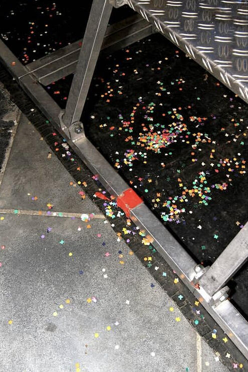 Her photographies and installations show a scenario of joy, dancing and the feeling of not being alone in a world that right now seems to be “everyone for themselves“.