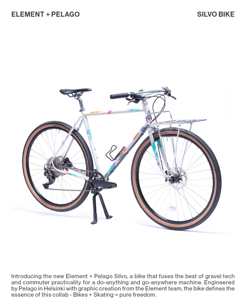 For the summer and spring season 2023 Element skateboards and Pelago Bicycles got together celebrating the freedom and commonalities of riding bikes and skateboards. This collab is representing the similarities and the spirit skate boards and bikes share which culminates in total freedom. For this instant they’ve launched the Element + Pelago Silvo, which is a bike engineered by Pelago and designed by Element to form the perfect ``do-anything and go-anywhere machine``.