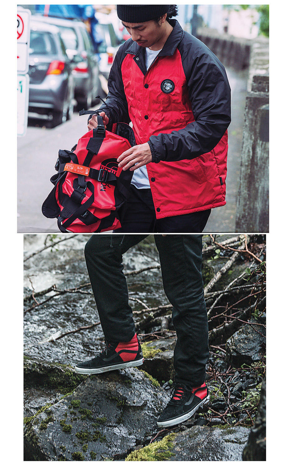 With help from The North Face trusted Thermoball™ technology, Vans updated the Torrey Jacket with the synthetic PrimaLoft® fill to guarantee lightweight warmth in the coolest of conditions. The Vans x TNF Torrey MTE quilted jacket is featured in three colorways – red, black and yellow, and signed off with a Vans x TNF embroidered patch on the front. In accessories, Vans reimagines the iconic The North Face Base Camp Duffle, modified for the first time ever to include a skateboard strap.