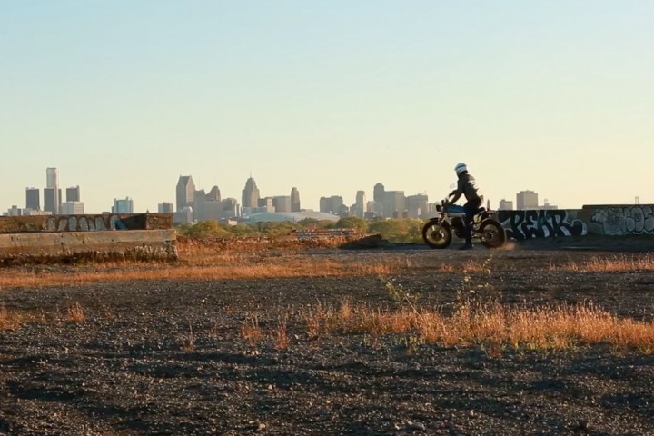 Last autumn, the guys behind Cantini Pictures Ltd. took their self-built motorcycle (and their drone) to Detroit's abandoned Packard Plant for a ride.