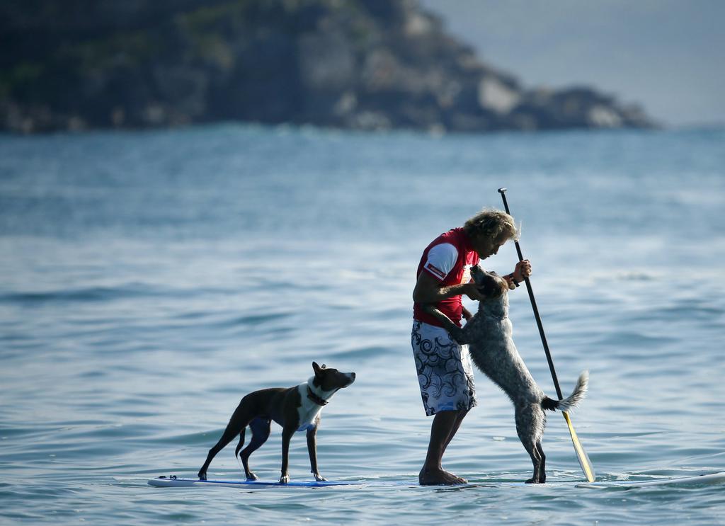 It may sound like the intro to a bad joke but just when you think you've seen it all, one Aussie and his pair of pups have taken the novelty SUP game to a whole new level.