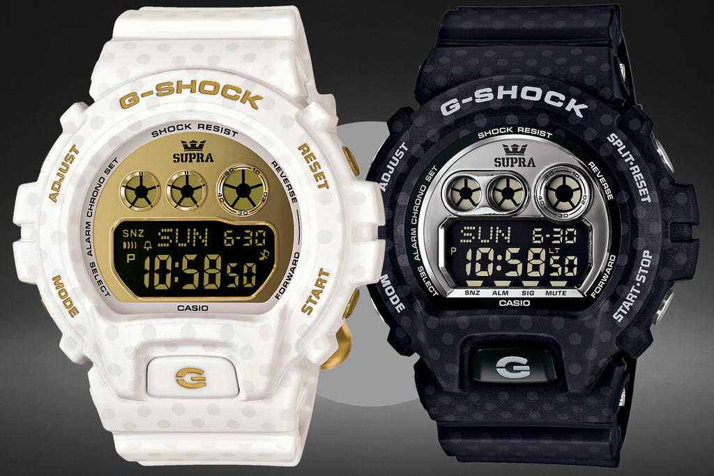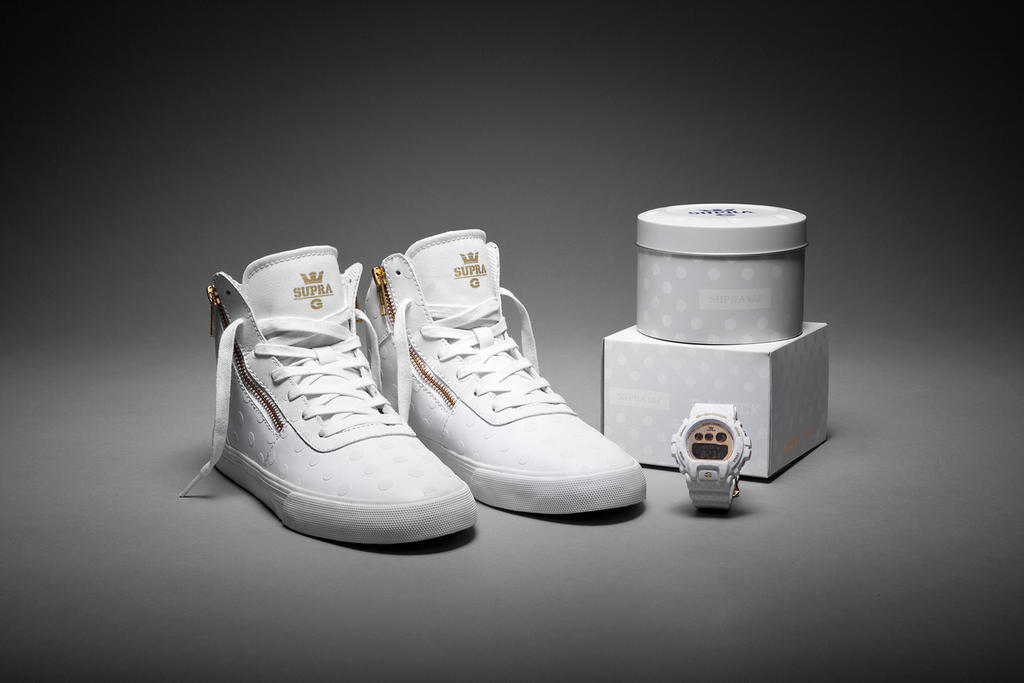 The monochromatic polka dot drop includes the GD-X6900SP-1ER + matching Estaban in black for men and the GMD-S6900SP-7ER for women + the Supra kicks hook-up in off-white. Polka dots all the way!