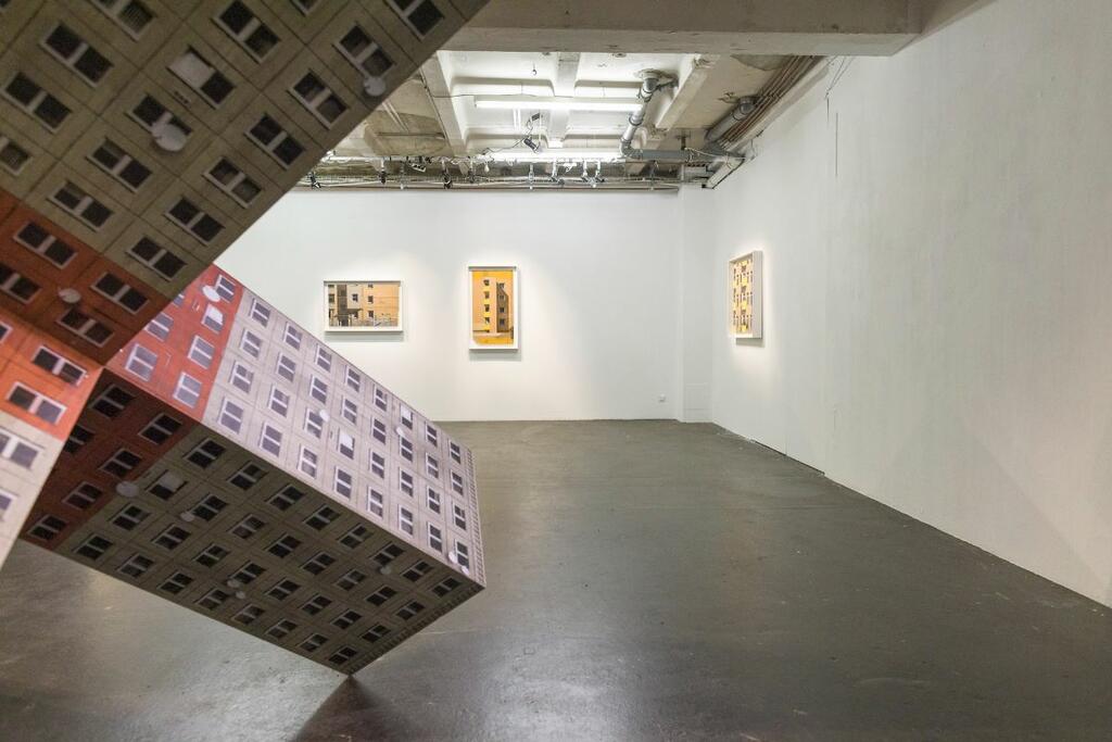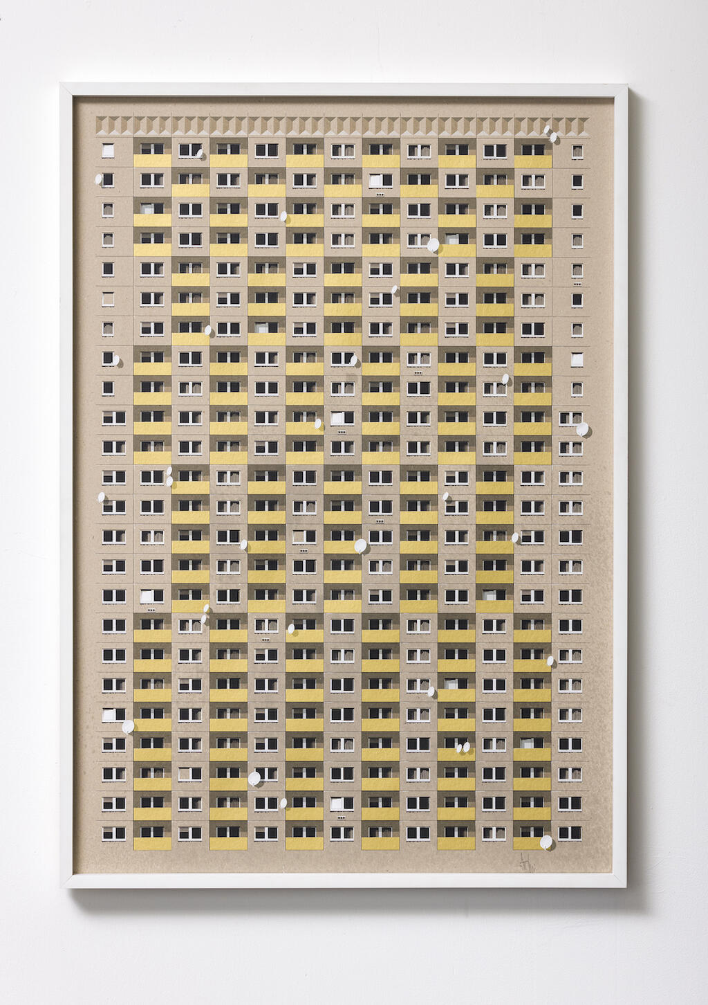 "HARD SHAPES BOXES" is the first solo exhibition of EVOL with Urban Spree Galerie. The show will be on view until July 17th, 2021. The exhibition displays one installation and a selection of new works on cardboard from the famed Berlin stencil artist whose chiseled renderings of Berlin houses and Plattenbau made him an icon of street art since more than 20 years.