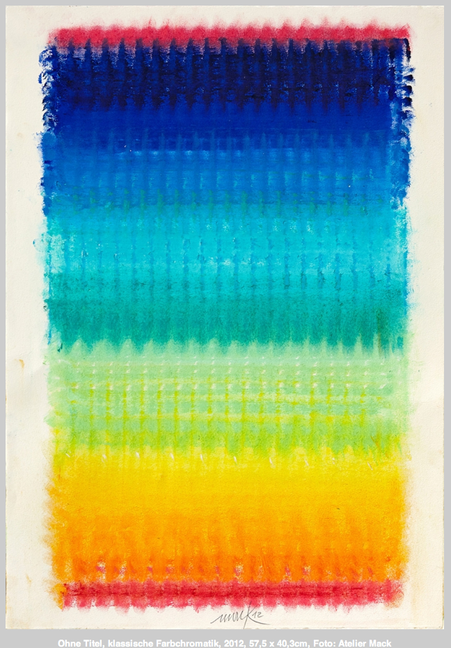 This solo exhibition is staged on the occasion of the artist's 85th birthday. A 124 page catalogue accompanies the exhibition with an essay surveying Heinz Mack's artistic career entitled "Heinz Mack and the "zero hour" of German art history" written by art historian Prof. Uwe Fleckner.