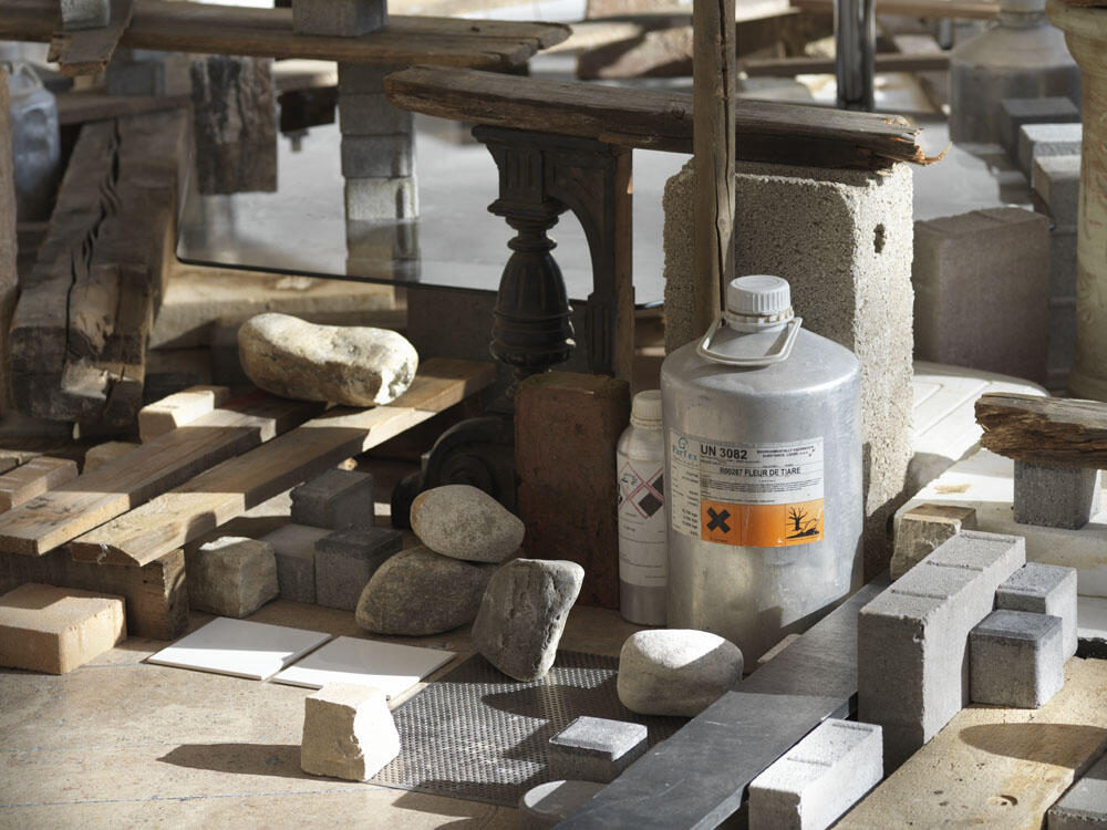Capitain Petzel is pleased to announce 199X Storm Garden, an exhibition by Tokyo based artist Hiroki Tsukuda. It features an installation composed of objects found on-site, paintings, and a new series of multilayered pieces in which works on paper are imbricated with acrylic frames silkscreened with symbolic geometric patterns.