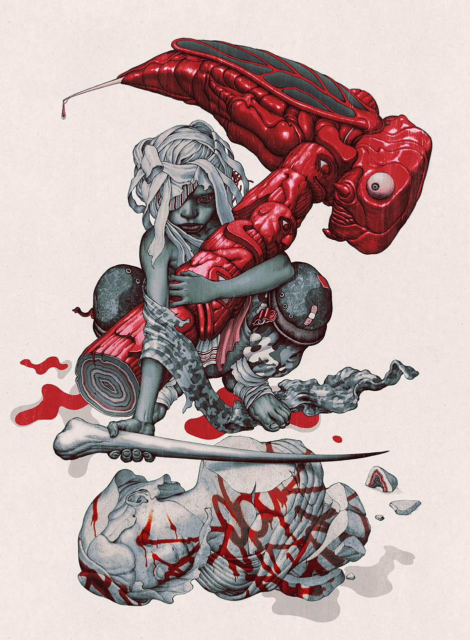 James Jean: Jean was born in Taiwan, raised in New Jersey, and attended the School of Visual Arts in New York. He currently and lives and works Los Angeles. Known for this virtuosic ability to work across different genres and mediums, he quickly gained notoriety as the youngest and most awarded cover artist in comics history, garnered numerous industry honors, and has influenced a generation of artists and illustrators with his imaginative and multifaceted approach to making work. Using pictorial conventions from such varied sources as Japanese Woodblock prints, Northern Renaissance paintings and etchings, Shanghai advertising posters, and comics, Jean’s images evoke a sense of fantasy and the subconscious. His vision was an integral part of Prada’s 2008 collection in a global campaign that incorporated murals, fabric prints, installations, and an animated film. Since then, he has given up illustrating in favor of paintings, book projects, and gallery shows, and has held exhibitions of his work in New York, Los Angeles, London, Hong Kong. and Tokyo.