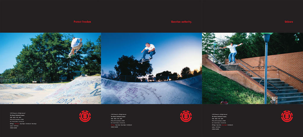 Element is comprised of diverse and unique individuals, with a wide spectrum of opinions, beliefs and lifestyles. Some of us drive Lamborghini’s and some of us ride bikes. Some of us are vegans and others are hunters. We listen to punk, reggae, hip hop, folk music and more. What we all have in common is a love of skateboarding and a positive vision for the world. Keep in mind, we are a family – and a family accepts people for who they are.